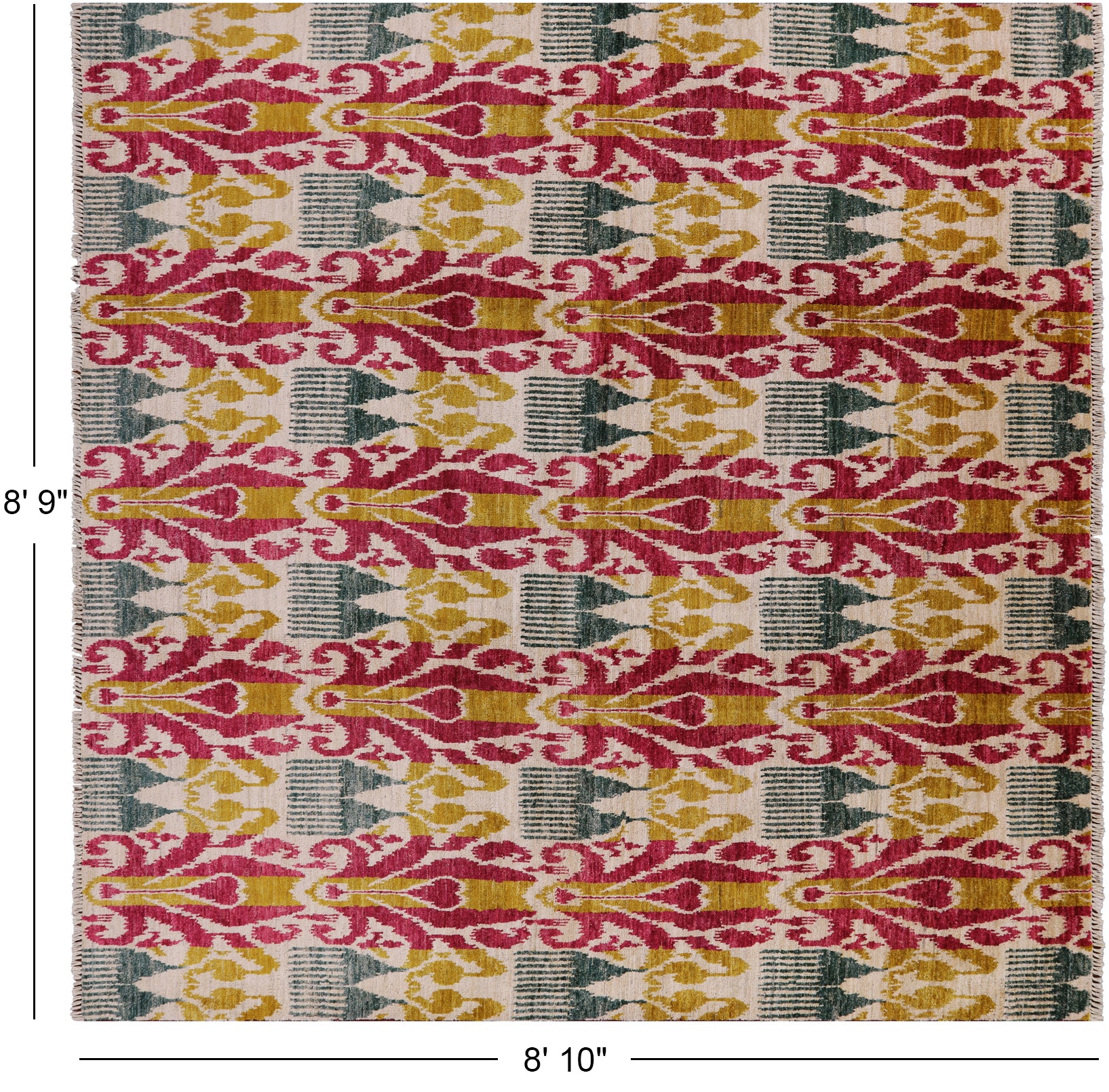 9' Square Hand Knotted Ikat Area Rug - P6071