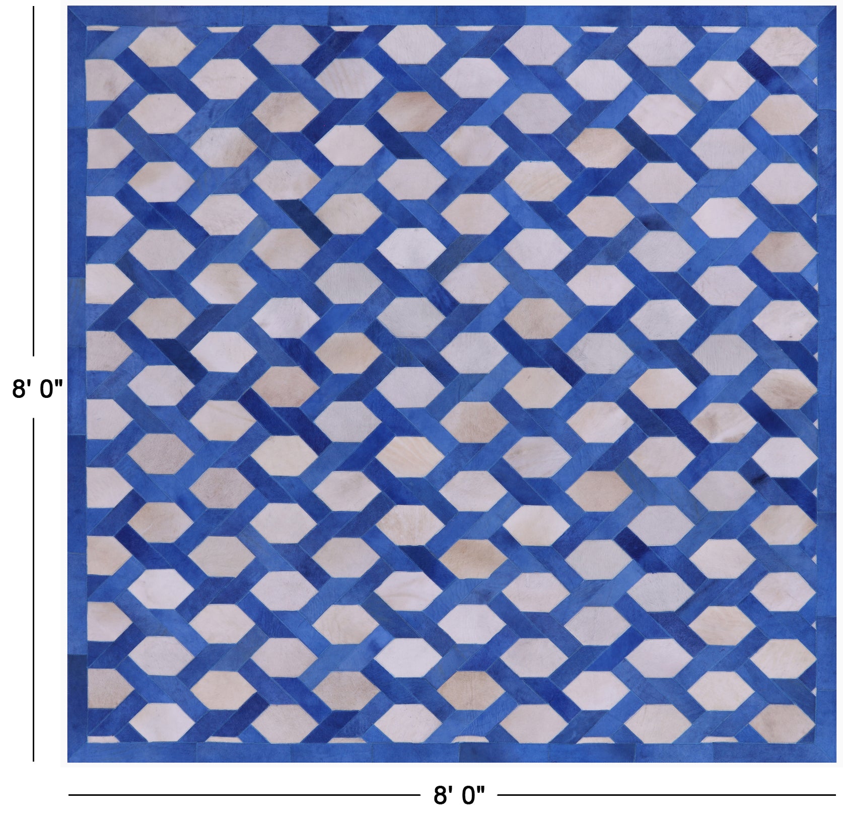 8' Square Hand Stitched Natural Cowhide Rug - Q2695