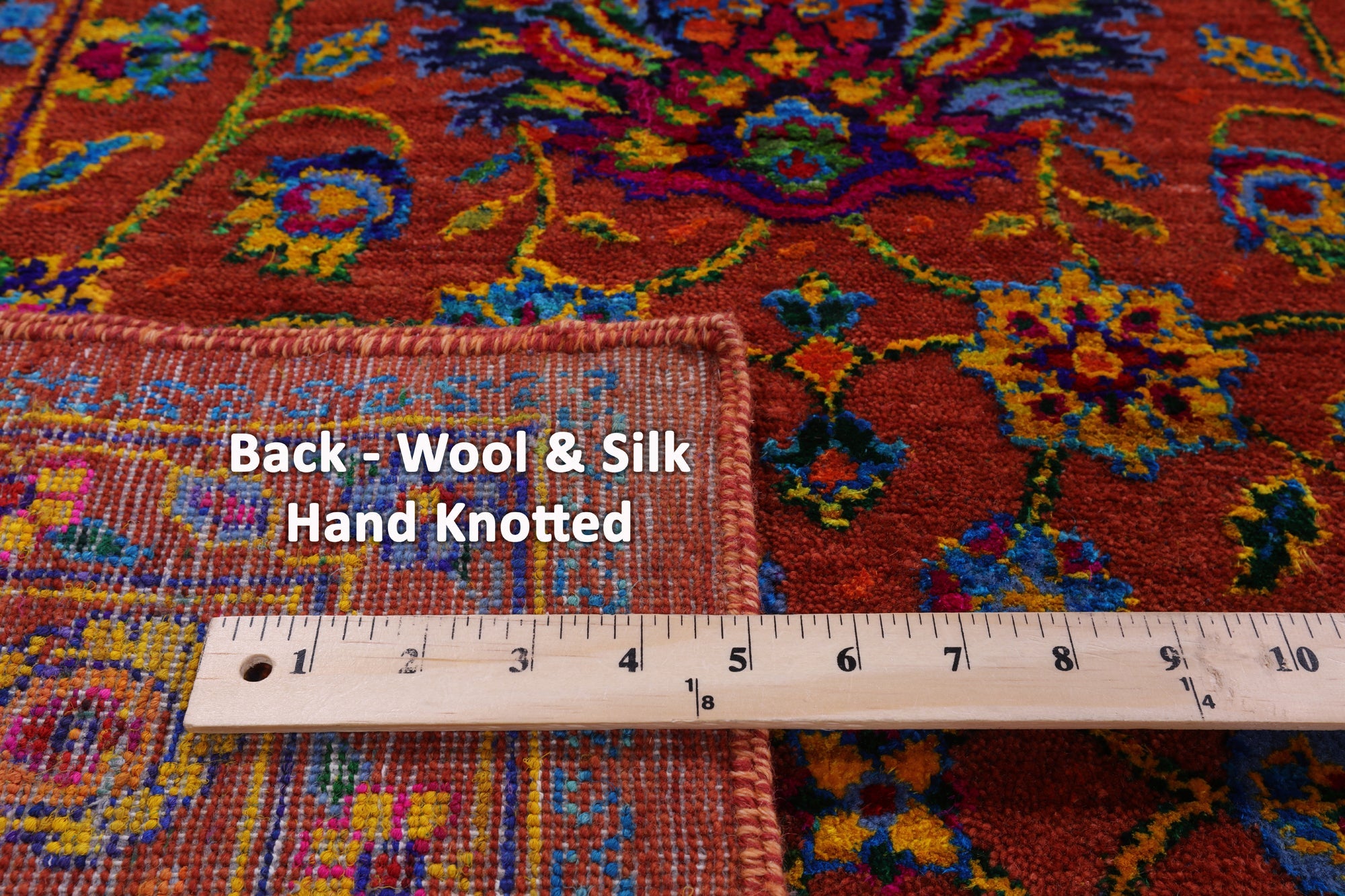 8' 1" X 8' 9" Square Persian Tabriz Handmade Wool & Silk Rug - Q20105