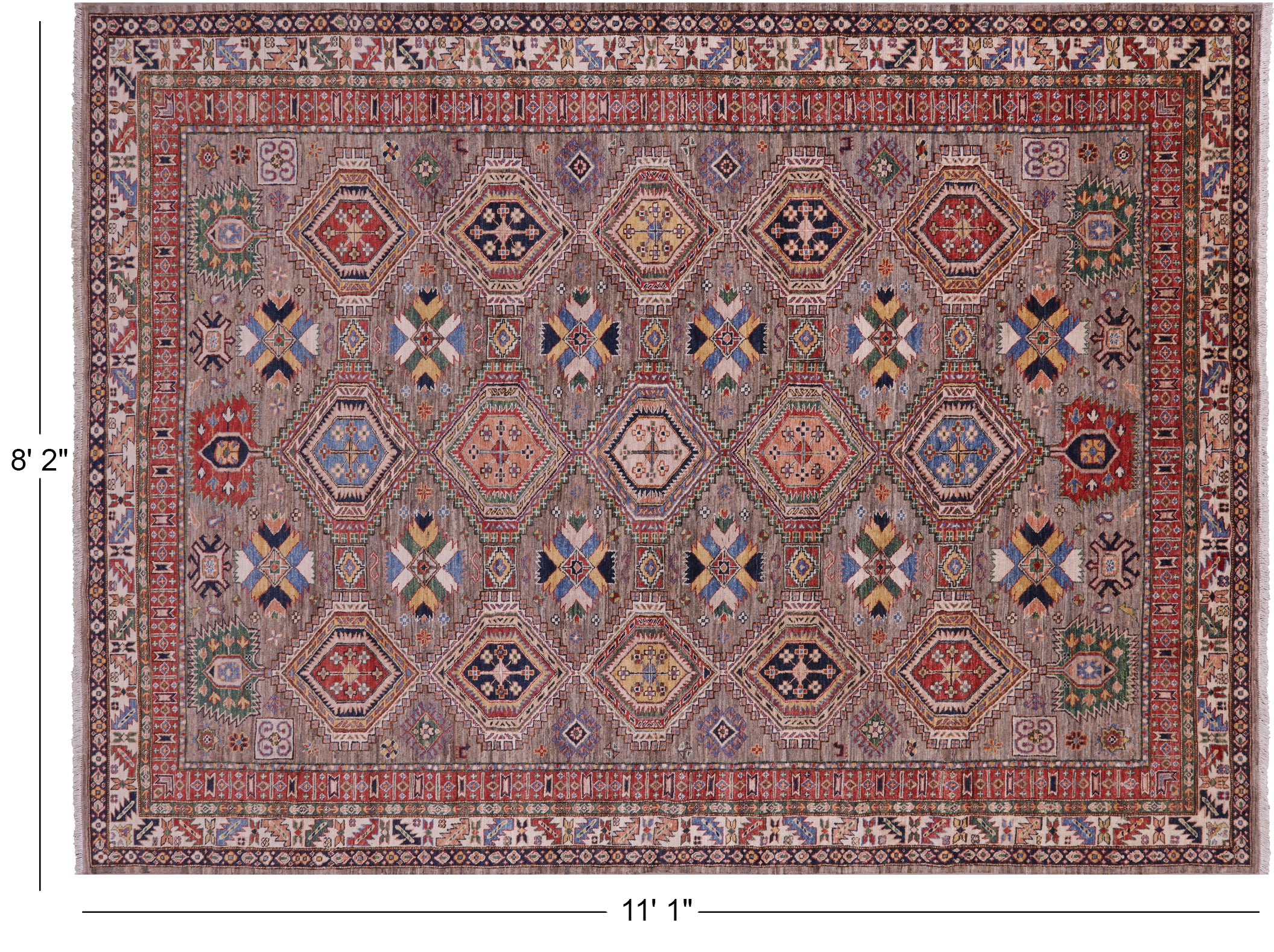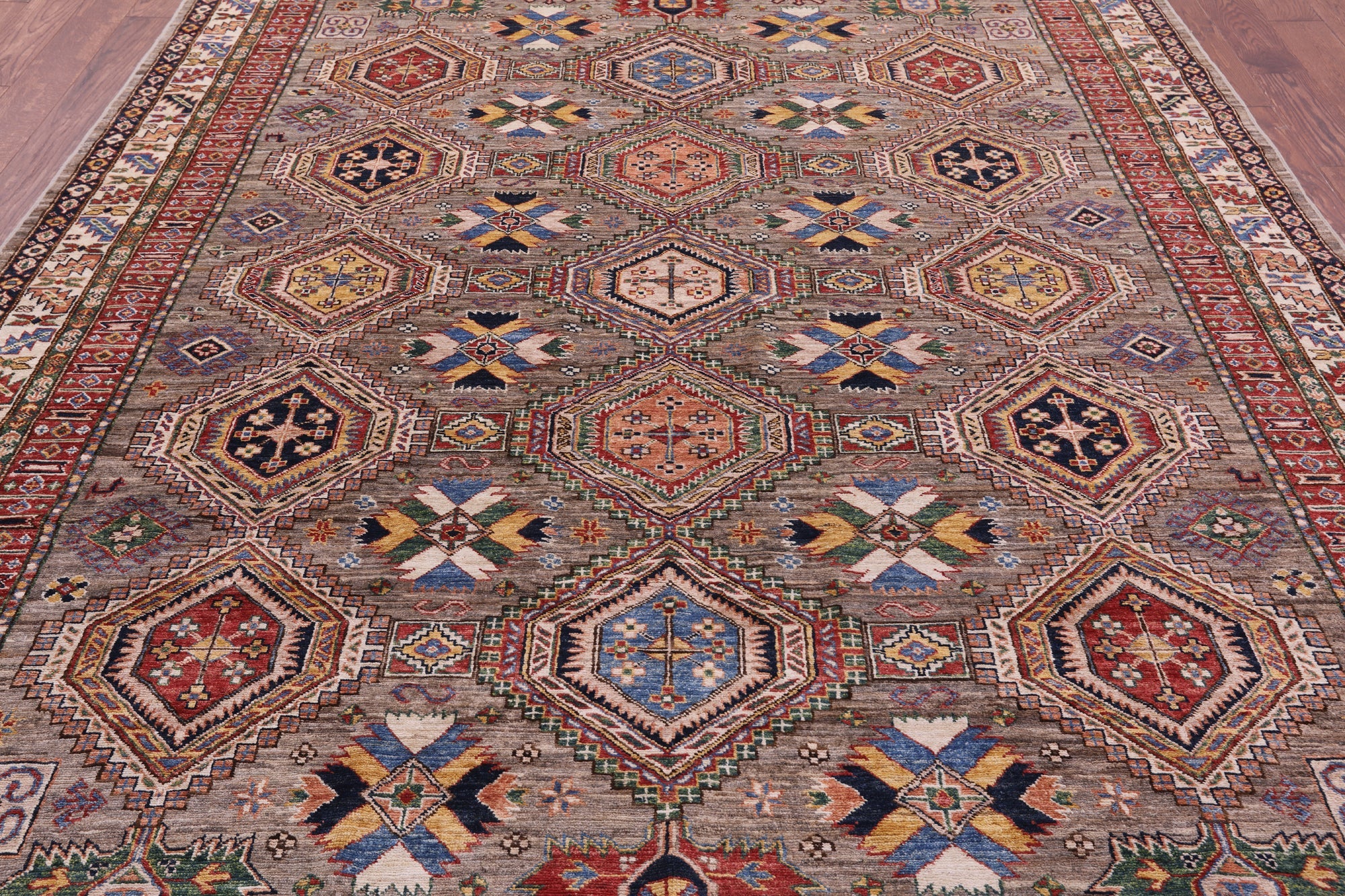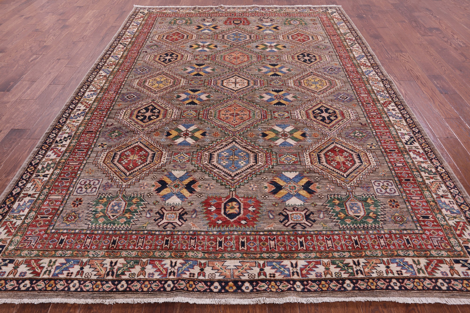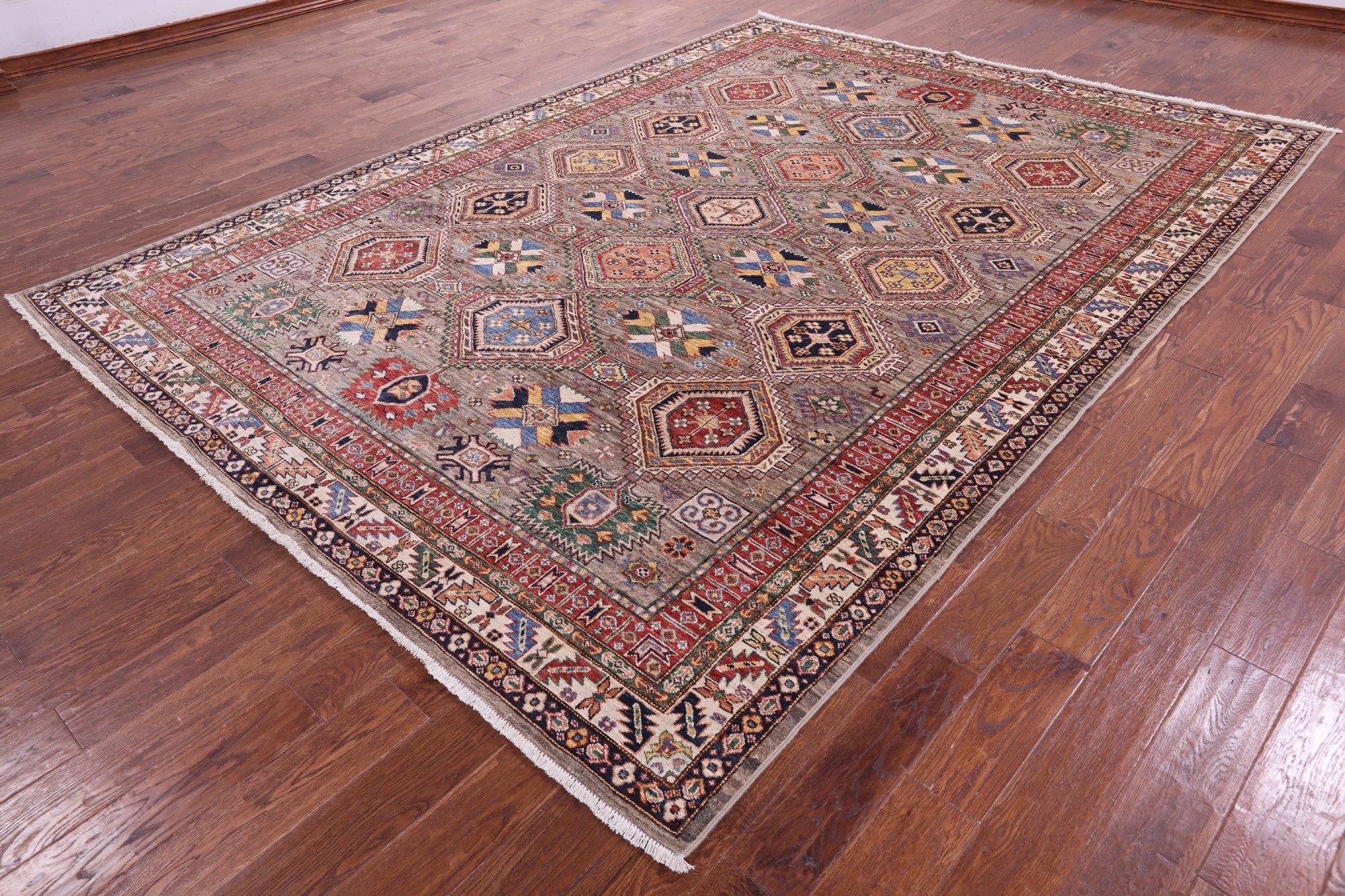 8' 2" X 11' 1" Super Kazak Hand Knotted Wool Rug - Q22043 is backordered and will ship as soon as it is back in stock.