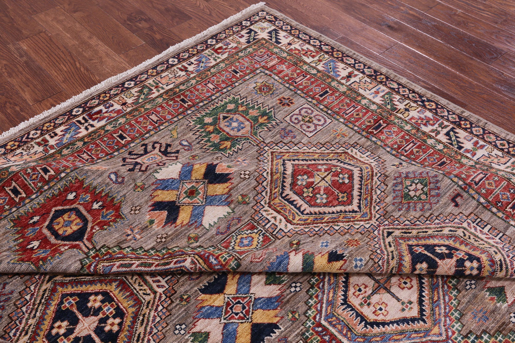 Super Kazak rugs were woven in the south of Caucasus and are very regional in their designs. Super Kazak rugs are very traditional in look and the patterns can vary from geometric shapes, tribal designs like people and animals, and symbolic medallions. They are beautifully intricate and heavy in design. These rugs come in varieties of rich, warm, jewel tones that can liven up any space.