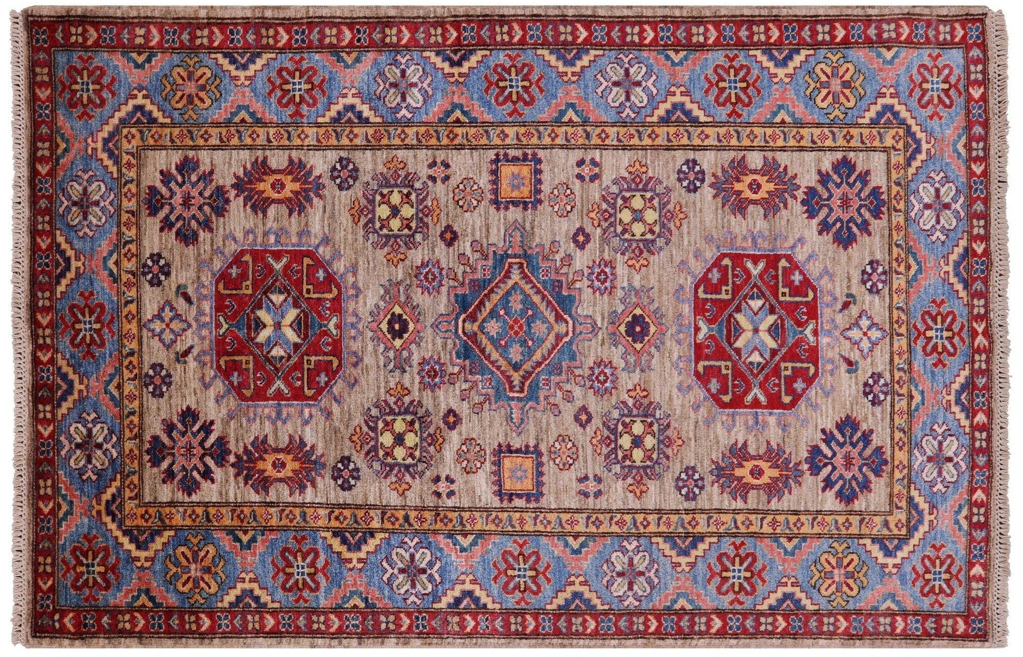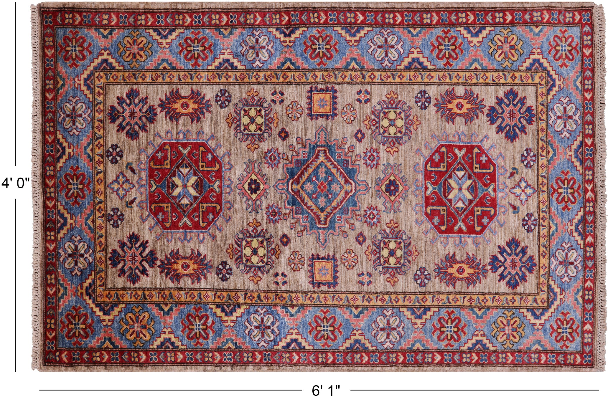4' 0" X 6' 1" Super Kazak Handmade Wool Rug - Q7698