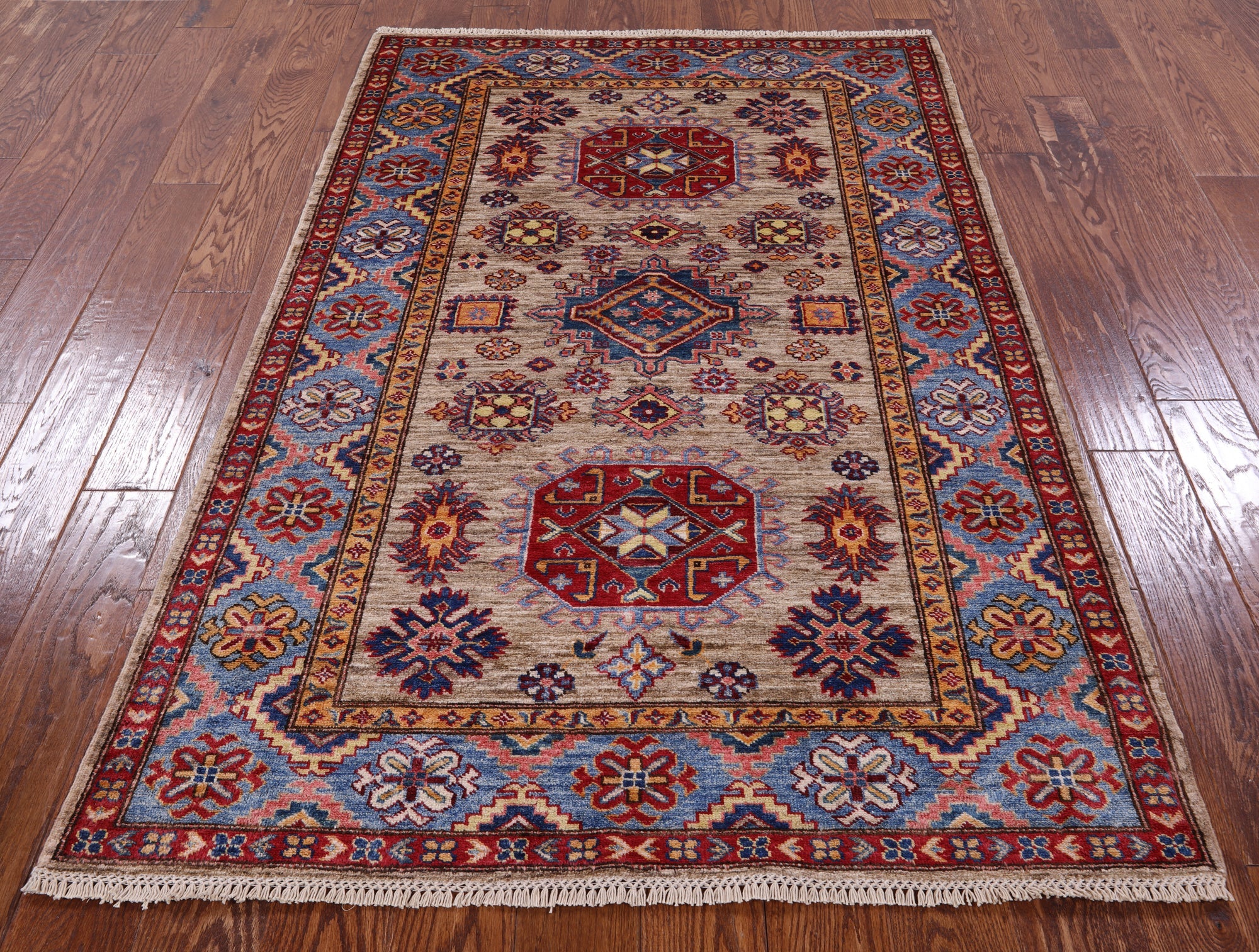 4' 0" X 6' 1" Super Kazak Handmade Wool Rug - Q7698 is backordered and will ship as soon as it is back in stock.