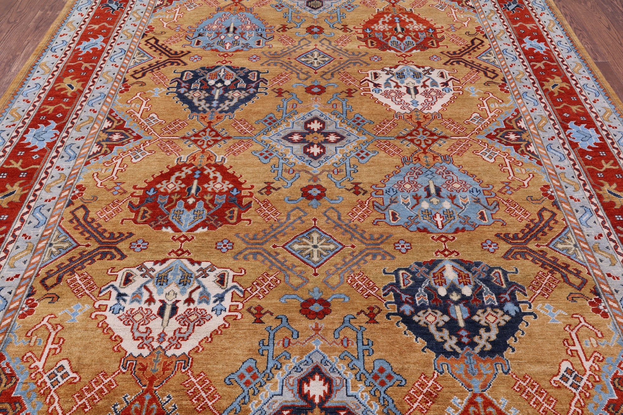 Super Kazak rugs were woven in the south of Caucasus and are very regional in their designs. Super Kazak rugs are very traditional in look and the patterns can vary from geometric shapes, tribal designs like people and animals, and symbolic medallions. They are beautifully intricate and heavy in design. These rugs come in varieties of rich, warm, jewel tones that can liven up any space.
