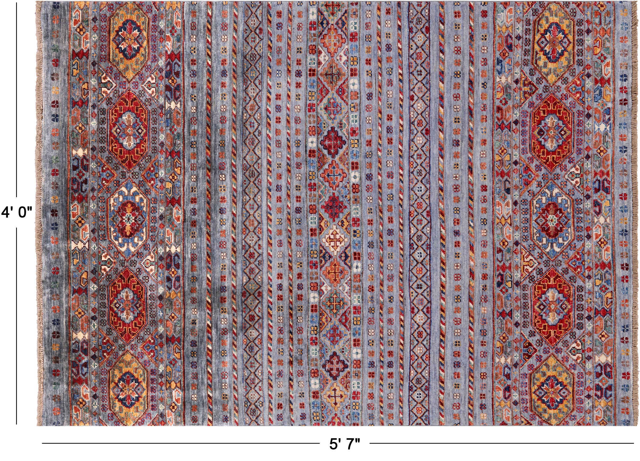 Super Kazak Khorjin Hand-Knotted Rug 4' 0" X 5' 7" - Q12314