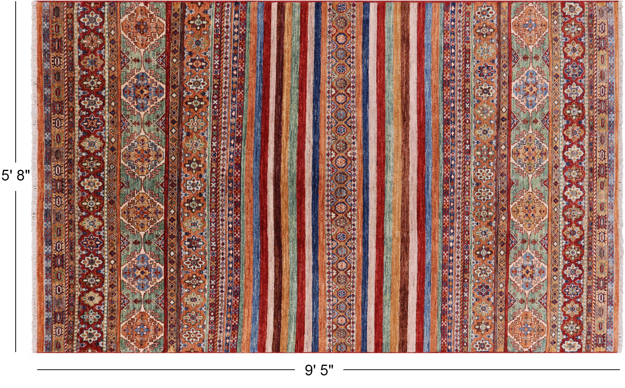 5' 8" X 9' 5" Super Kazak Khorjin Hand Knotted Rug - Q4890
