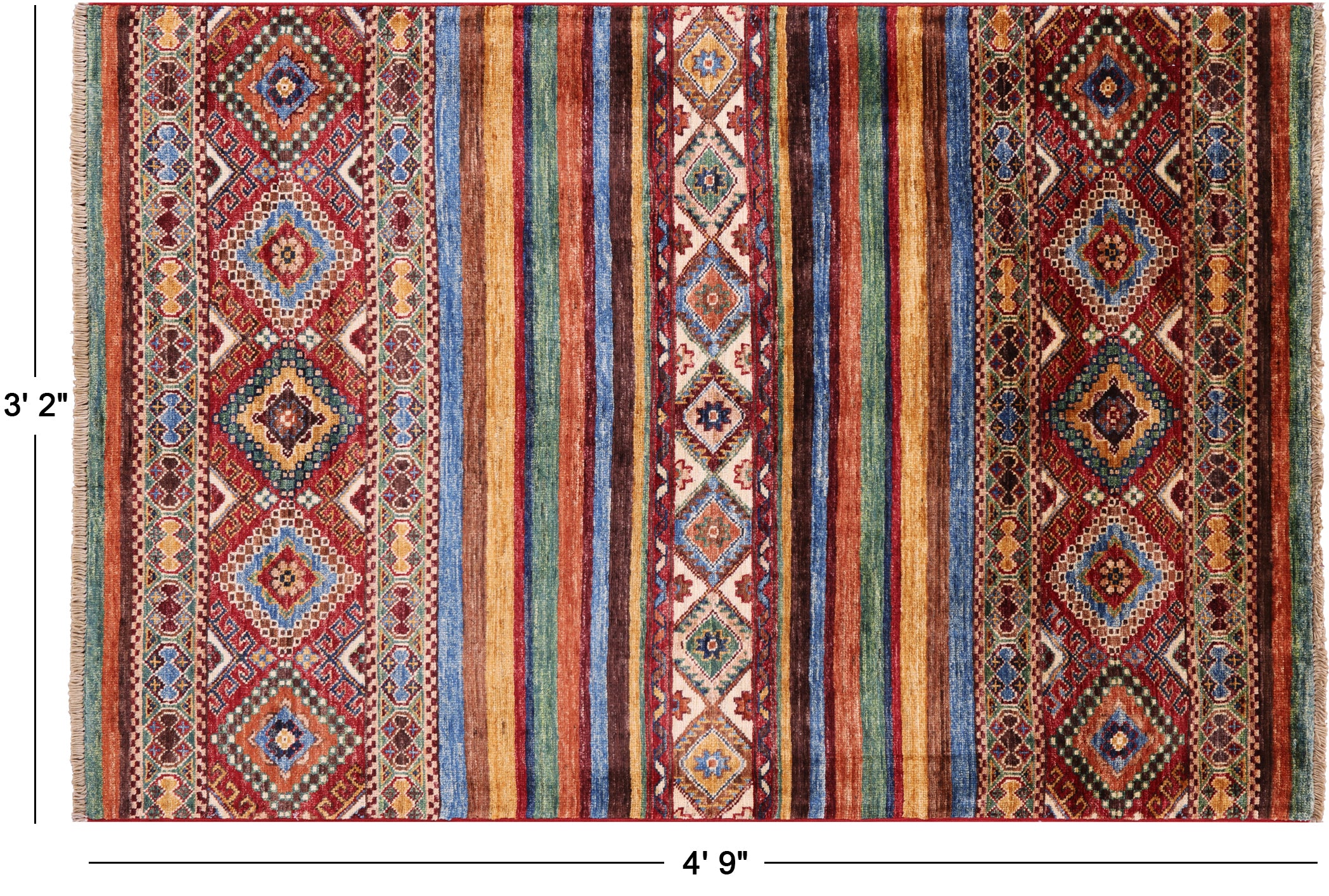 3' 2" X 4' 9" Super Kazak Khorjin Hand Knotted Wool Rug - Q12320