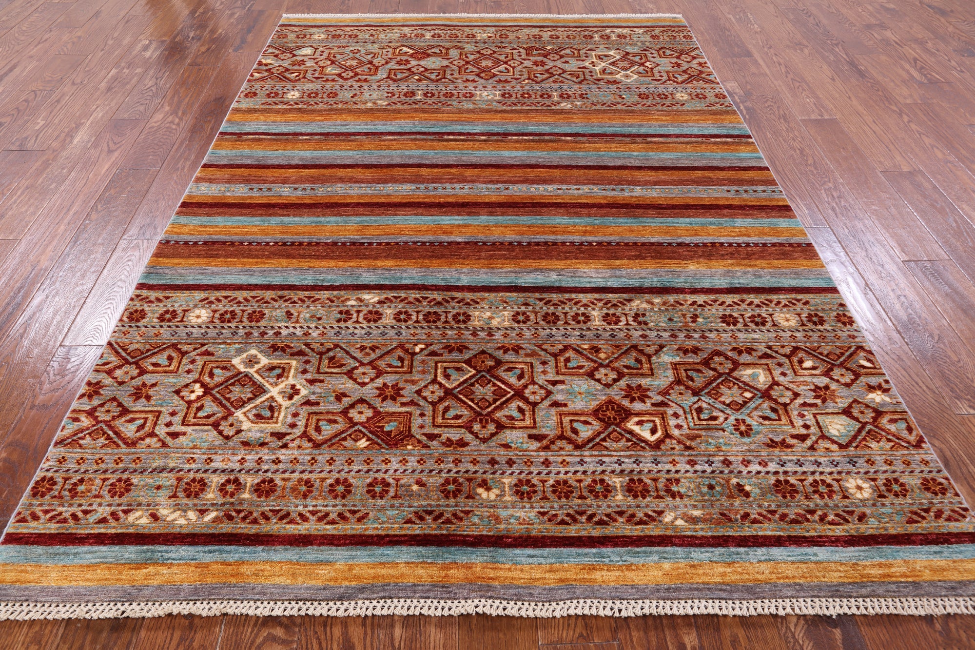 5' 7" X 8' 2" Super Kazak Khorjin Handmade Rug - Q7545 is backordered and will ship as soon as it is back in stock.