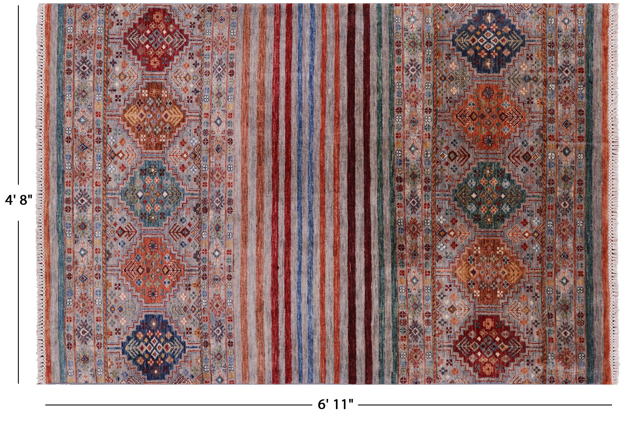 Super Kazak Khorjin Handmade Wool Rug 4' 8" X 6' 11" - Q11291