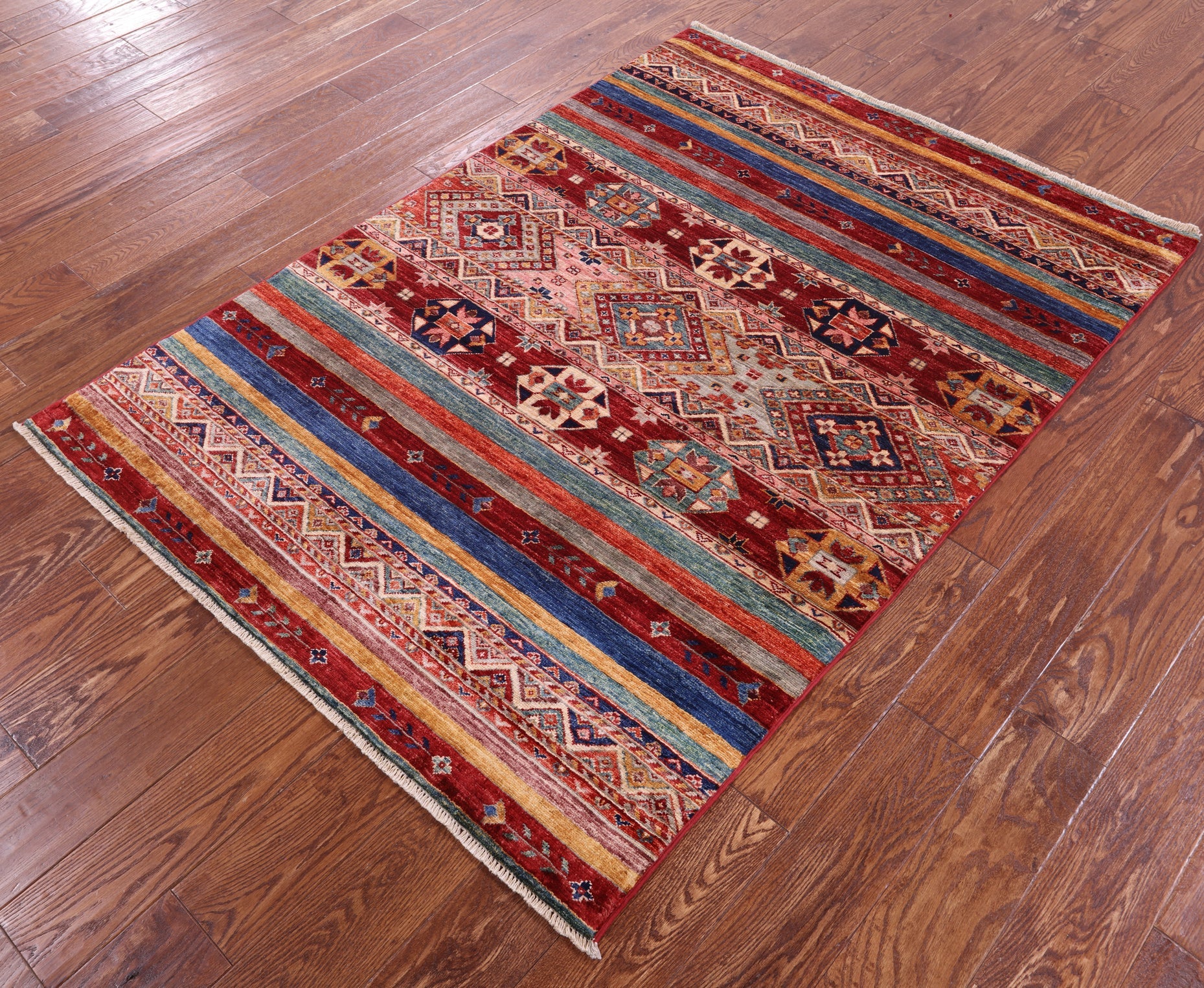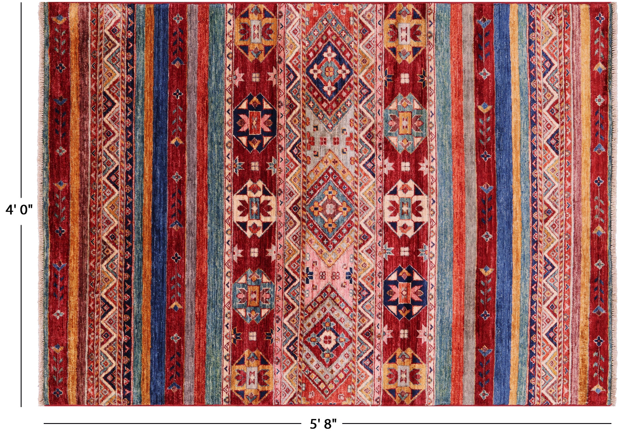 4' 0" X 5' 8" Super Kazak Khorjin Handmade Wool Rug - Q17069
