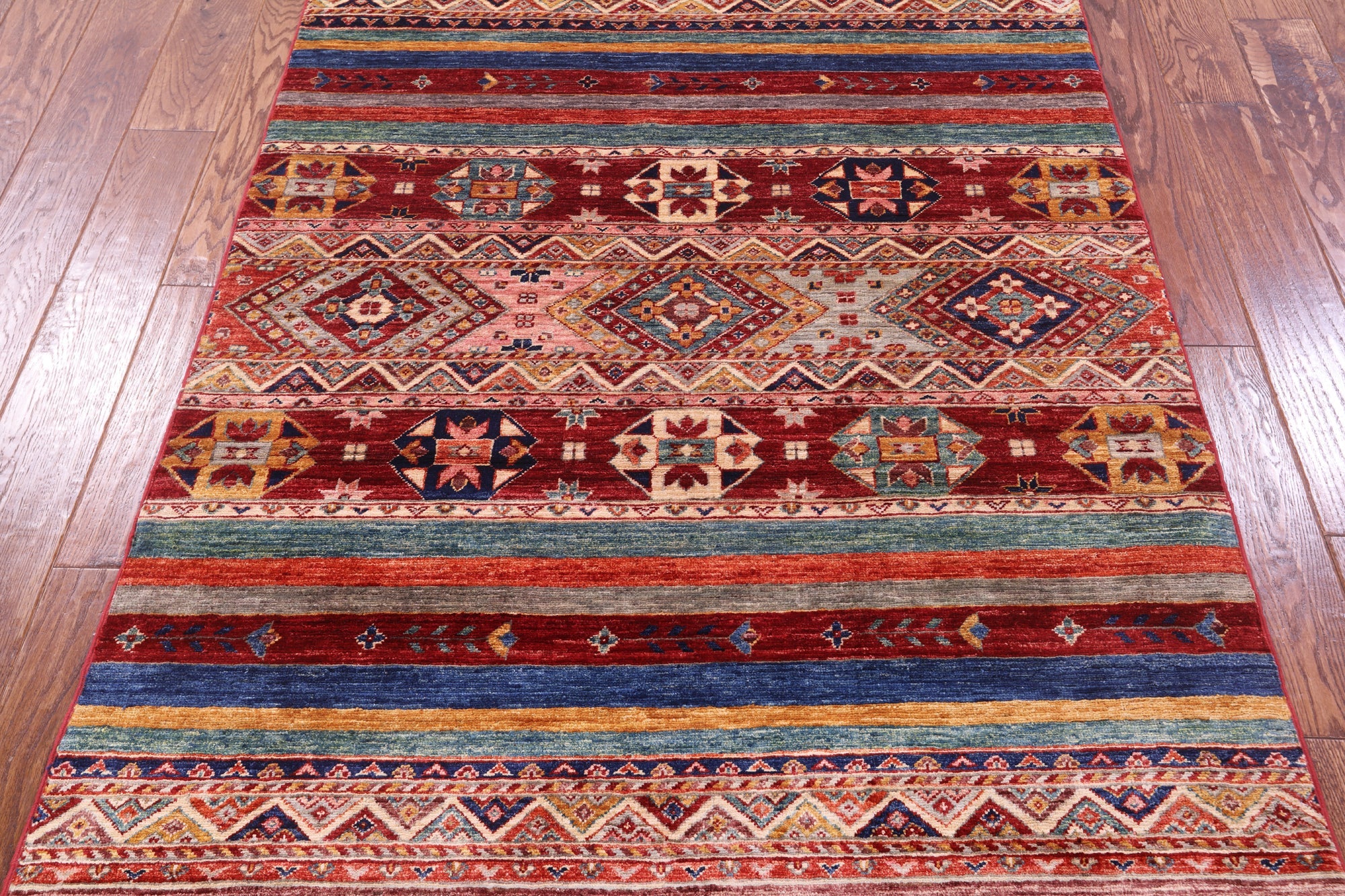 4' 0" X 5' 8" Super Kazak Khorjin Handmade Wool Rug - Q17069 is backordered and will ship as soon as it is back in stock.