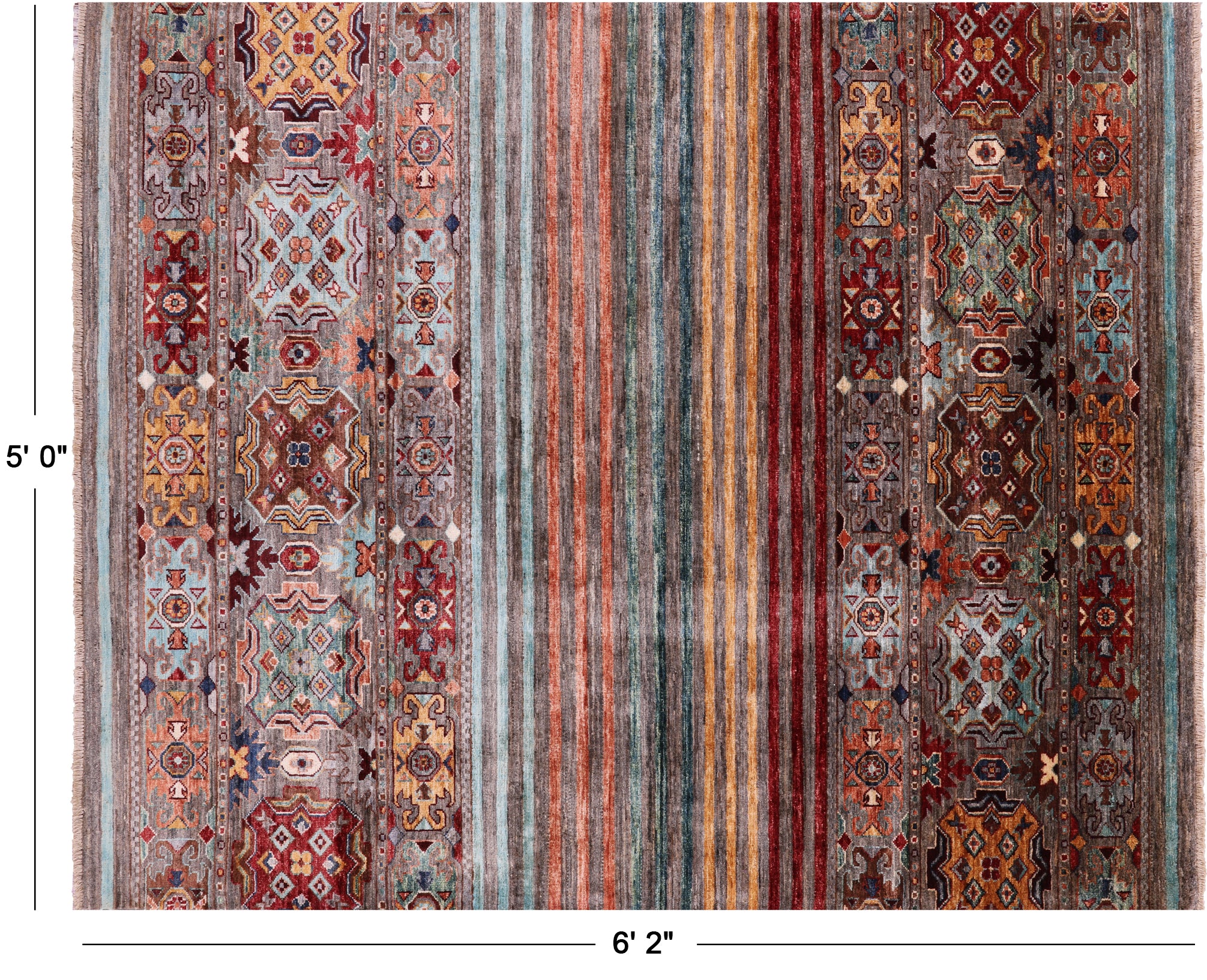 Super Kazak Khorjin Handmade Wool Rug 5' 0" X 6' 2" - Q17286