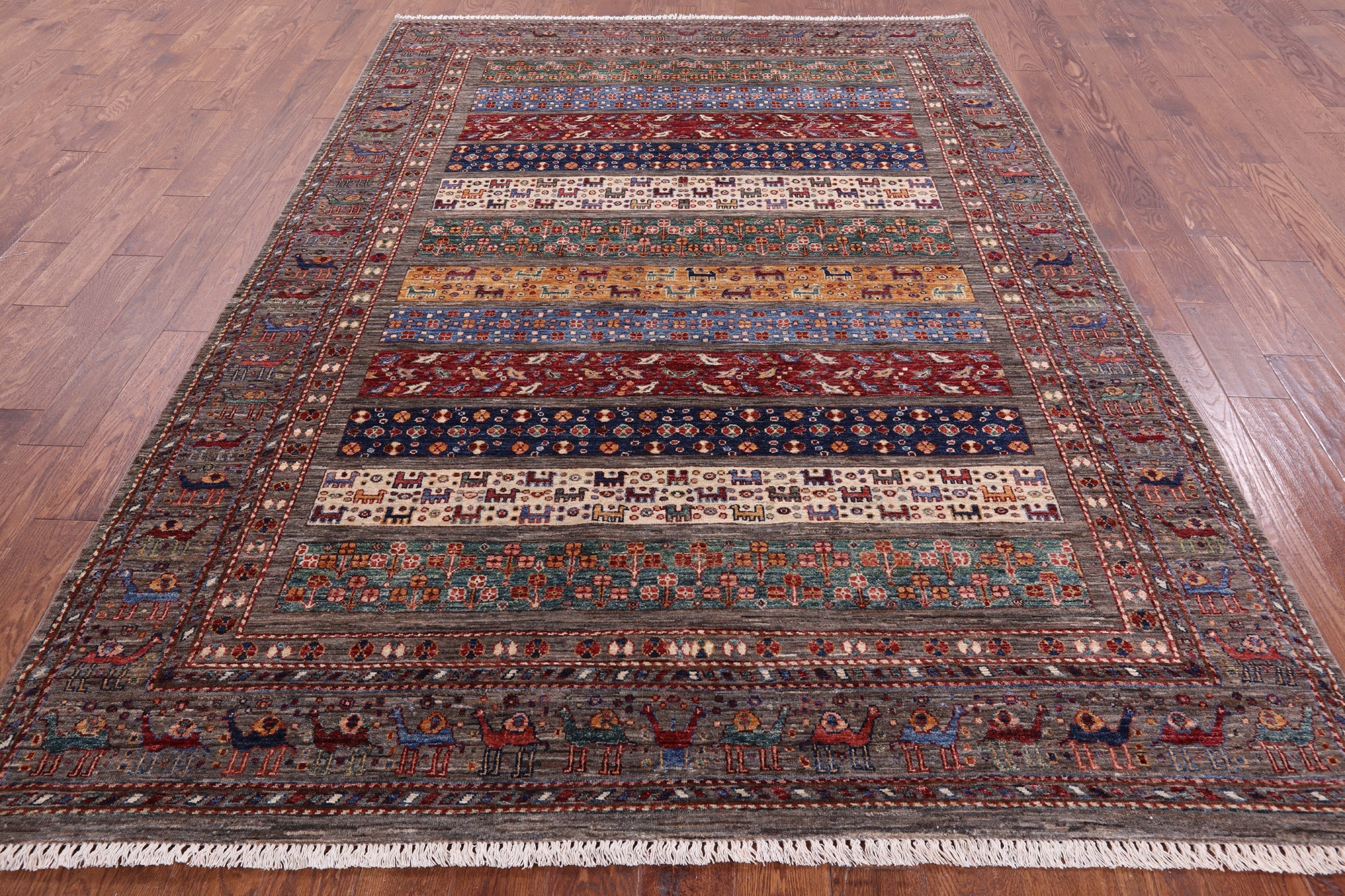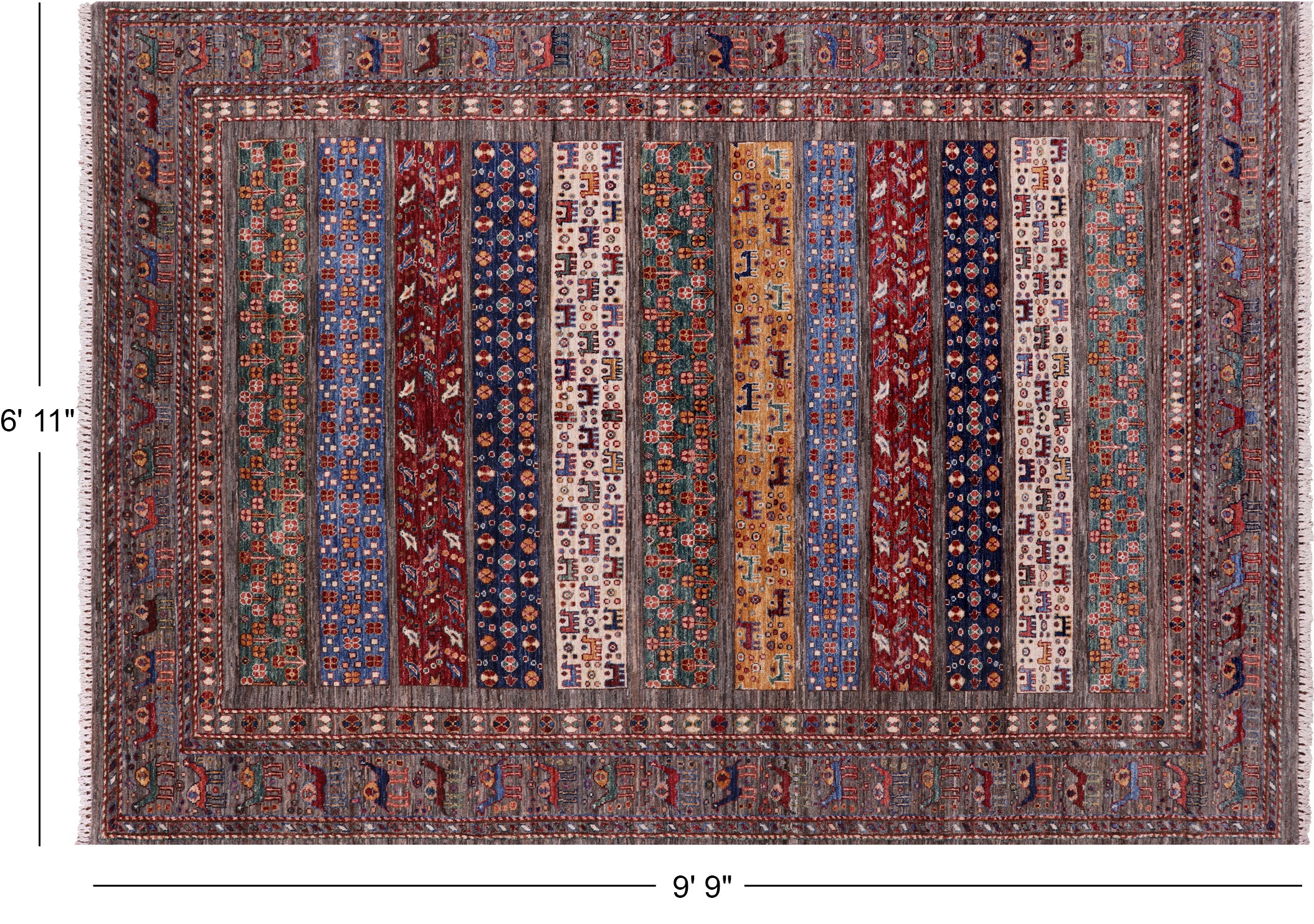 Tribal Persian Gabbeh Hand Knotted Rug 6' 11" X 9' 9" - Q10446