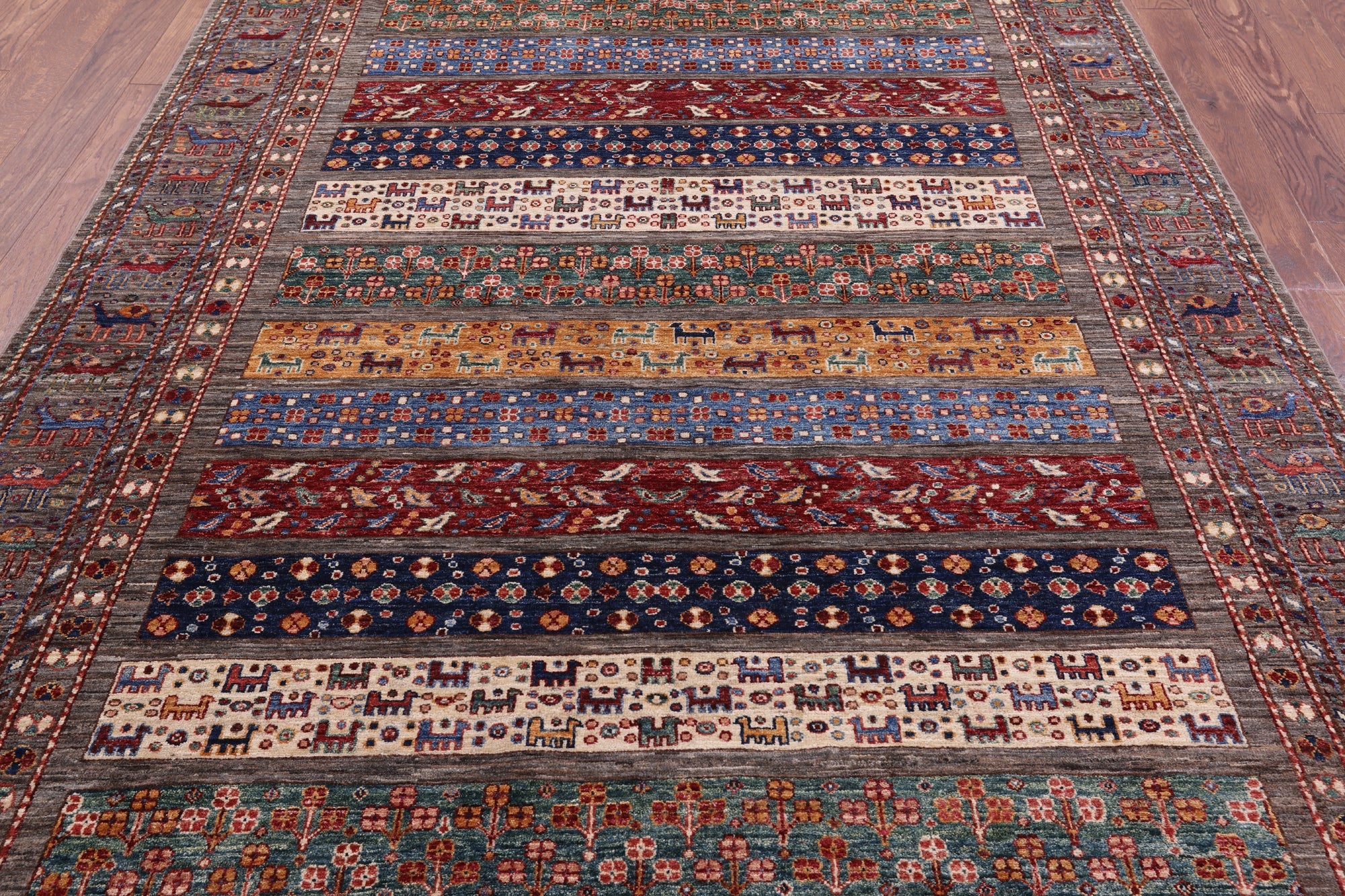 Tribal Persian Gabbeh Hand Knotted Rug 6' 11" X 9' 9" - Q10446 is backordered and will ship as soon as it is back in stock.