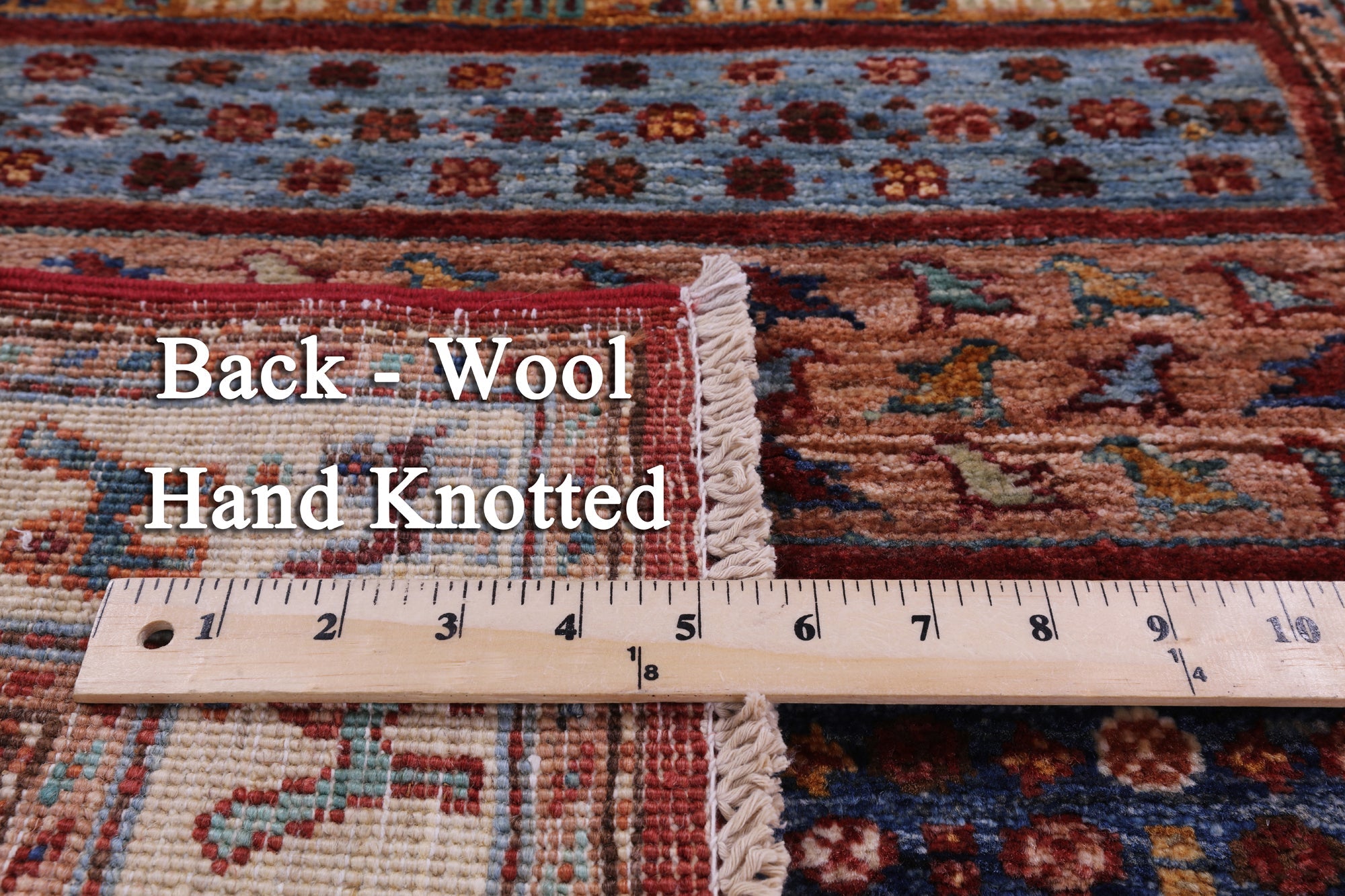 This is a genuine hand knotted cut pile rug, not tufted, hooked, or machine made. All we do is hand knotted.