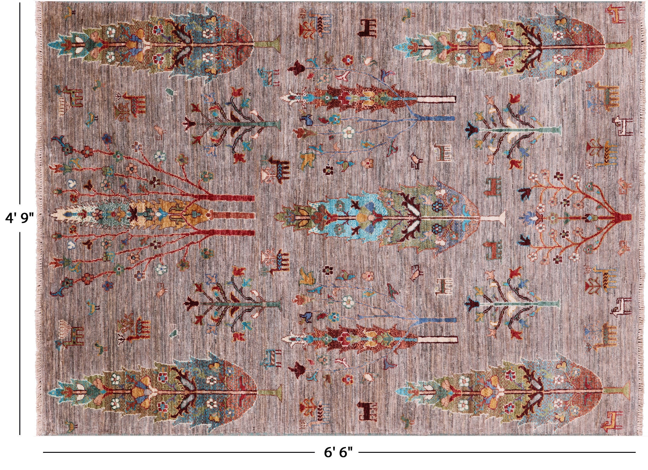 4' 9" X 6' 6" Tribal Persian Gabbeh Hand-Knotted Wool Rug - Q17145