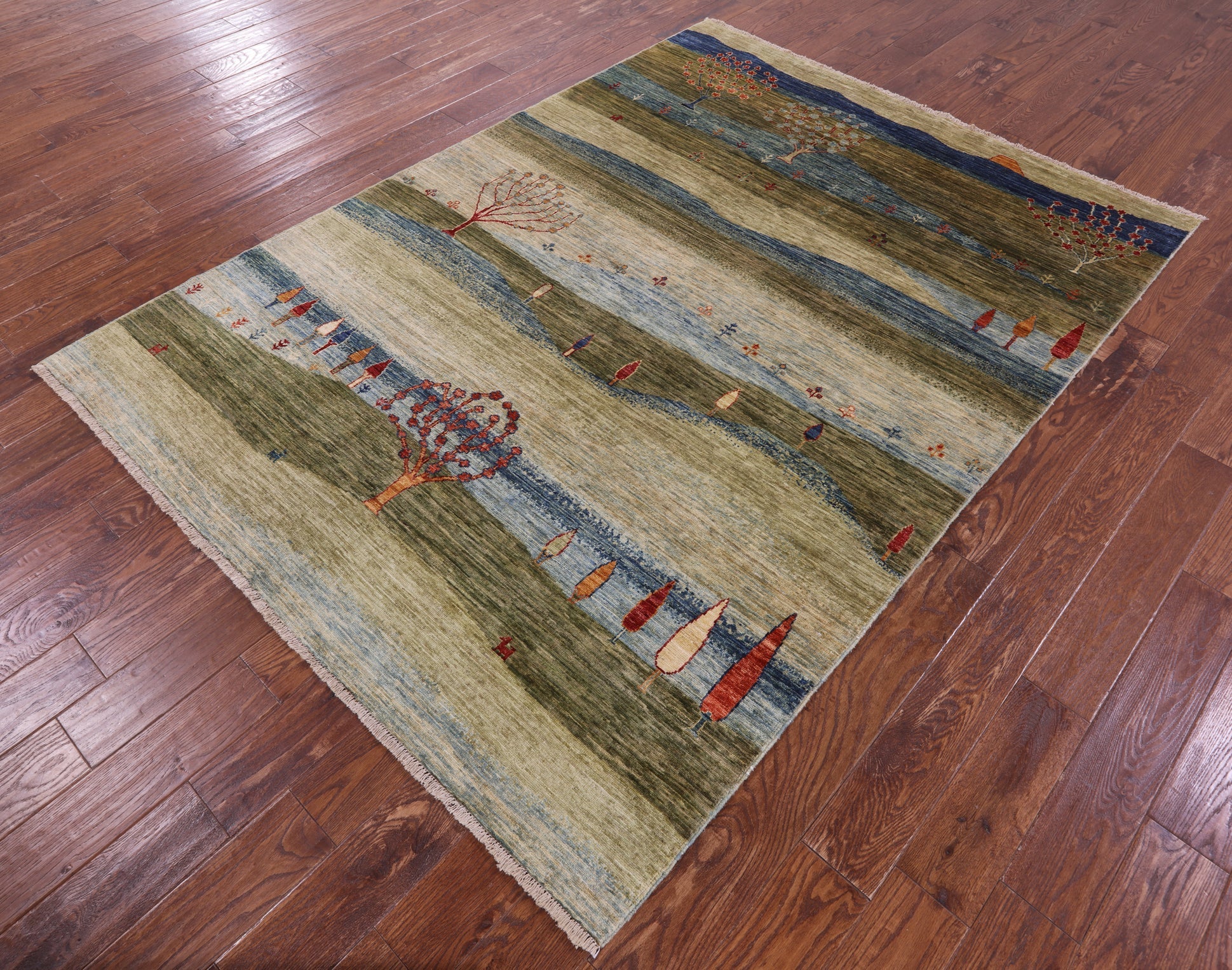 Gabbeh rugs are nothing short of simplistic and tribal, with designs consisting of primarily geometric shapes, animals, and plants. All done in a simplified way and based on the nomadic observation. Commonly brightly colored, these rugs are fun and beautiful and will add a warm touch to any home.