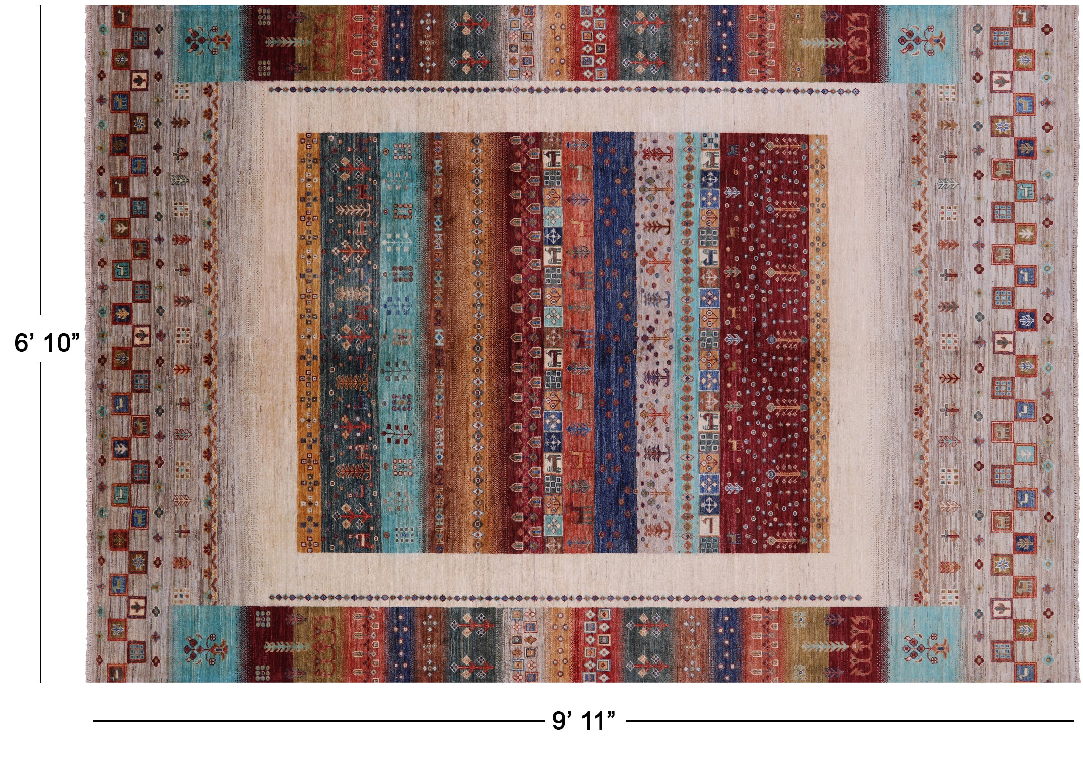 Tribal Persian Gabbeh Handmade Rug 6' 10" X 9' 11" - Q20510