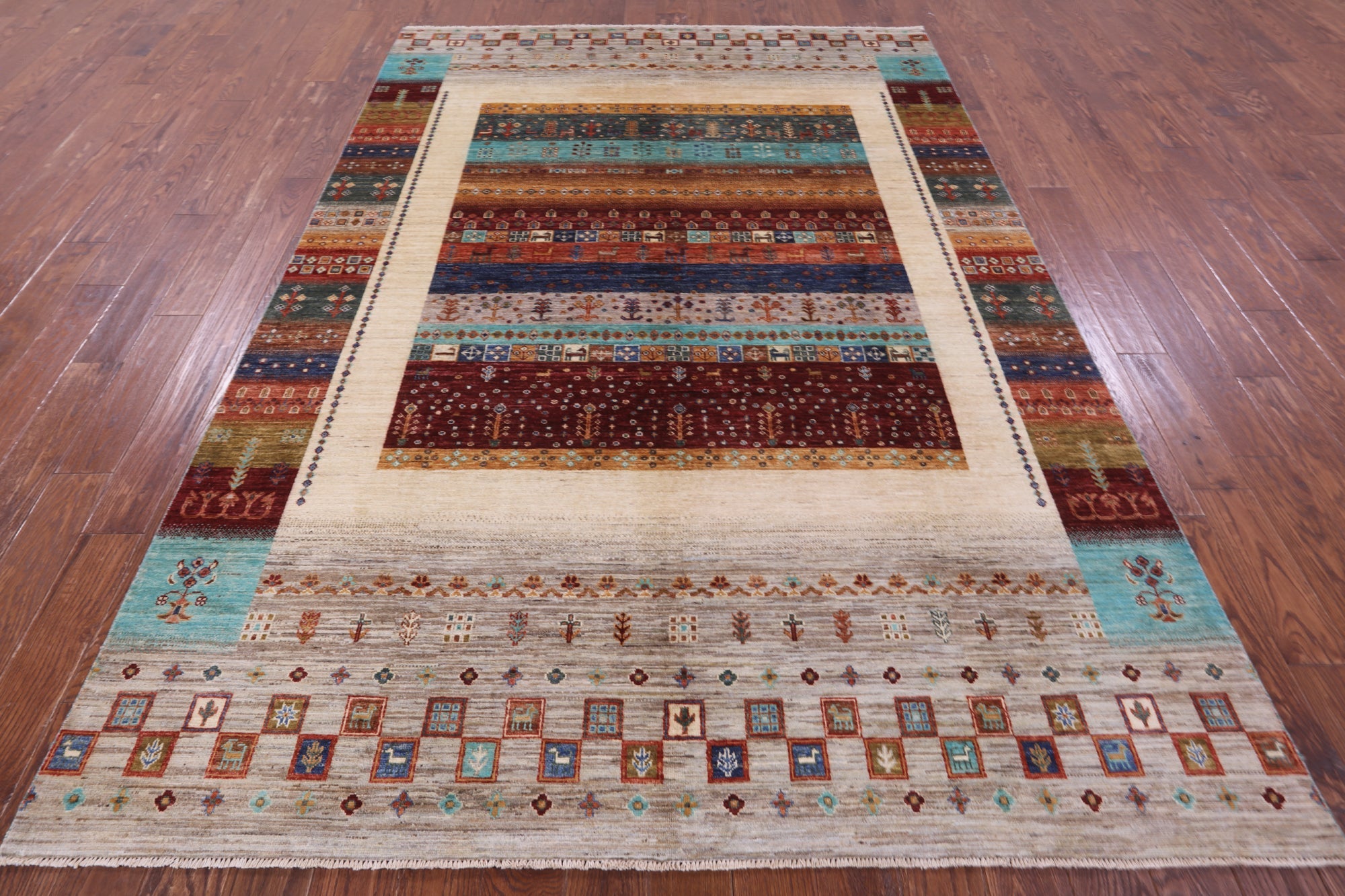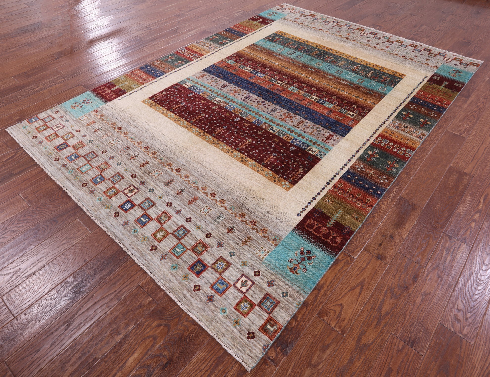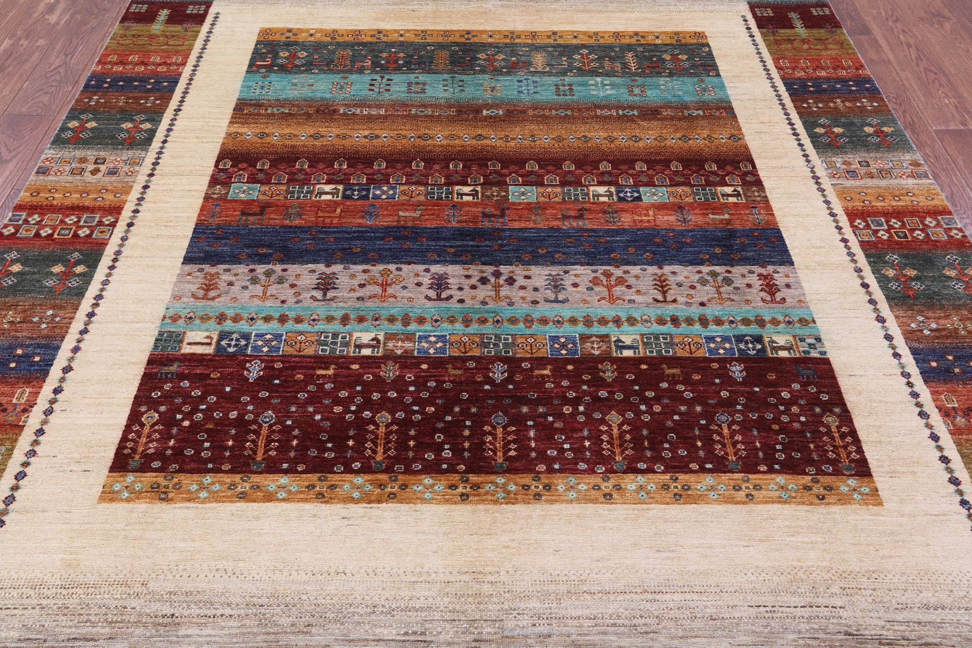 Tribal Persian Gabbeh Handmade Rug 6' 10" X 9' 11" - Q20510 is backordered and will ship as soon as it is back in stock.