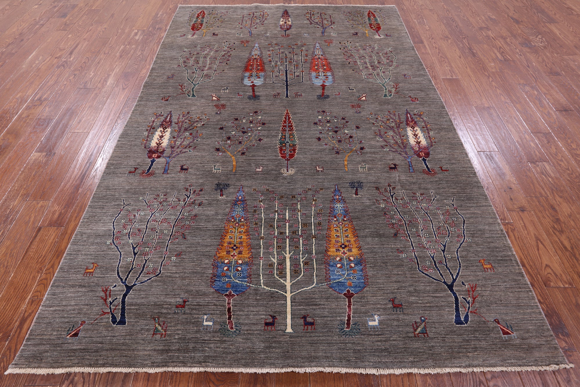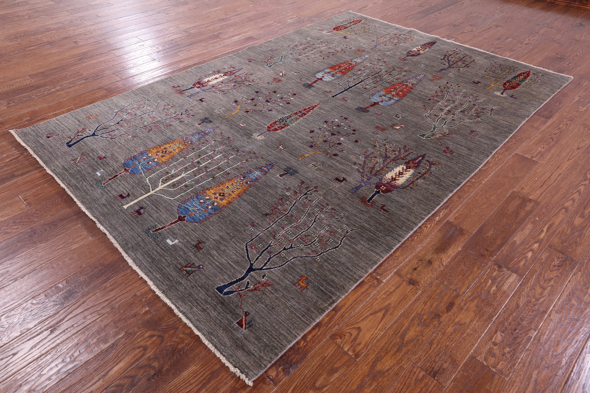 Gabbeh rugs are nothing short of simplistic and tribal, with designs consisting of primarily geometric shapes, animals, and plants. All done in a simplified way and based on the nomadic observation. Commonly brightly colored, these rugs are fun and beautiful and will add a warm touch to any home.
