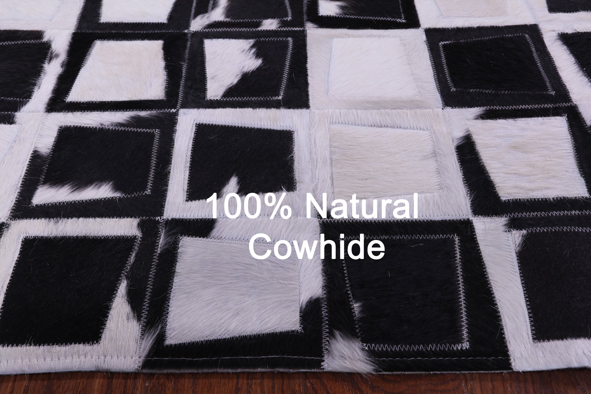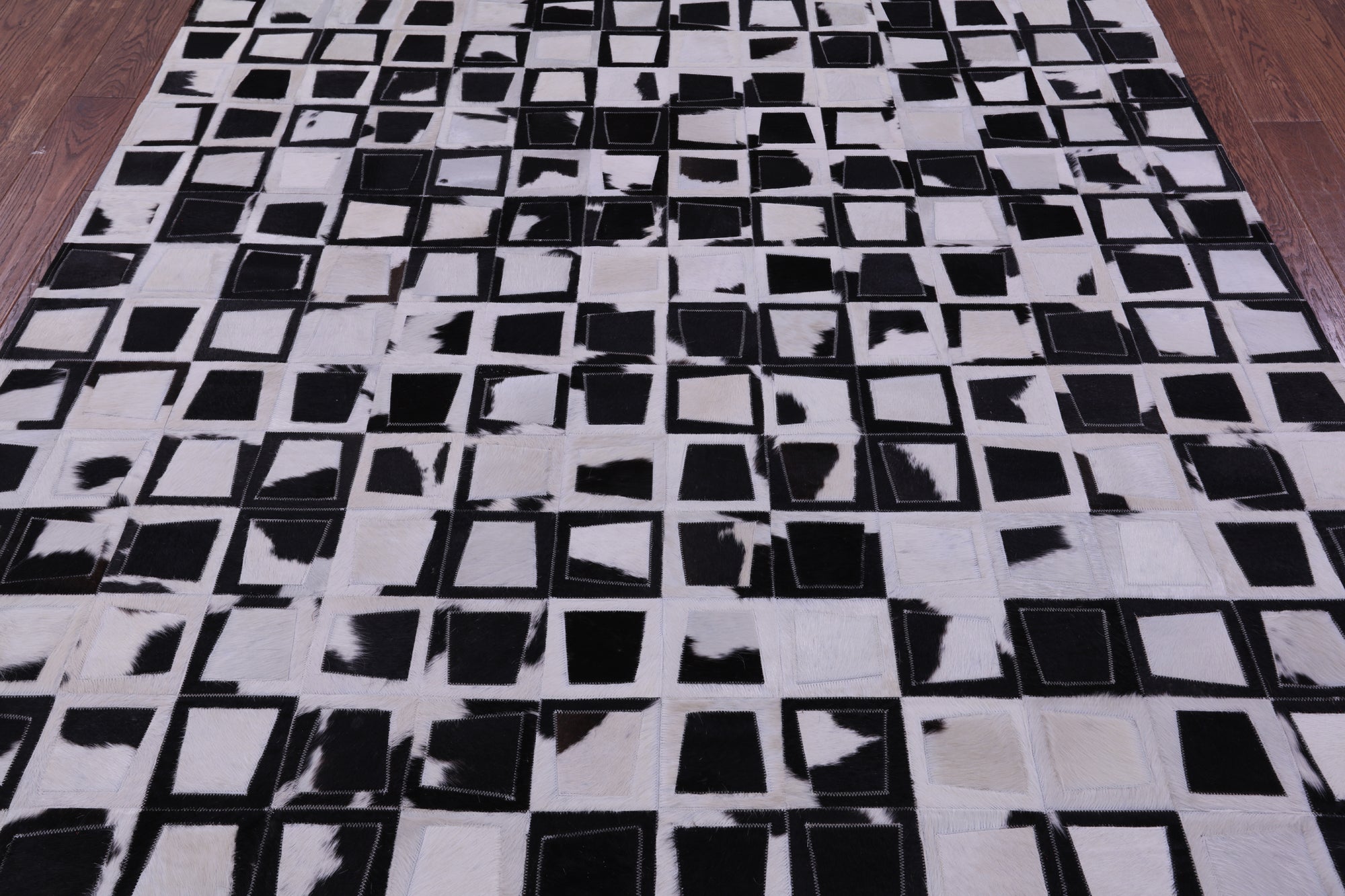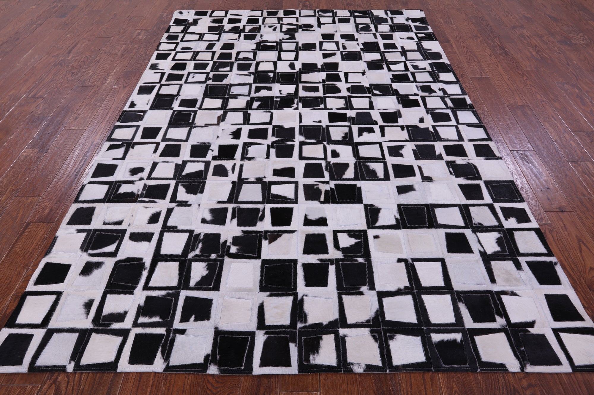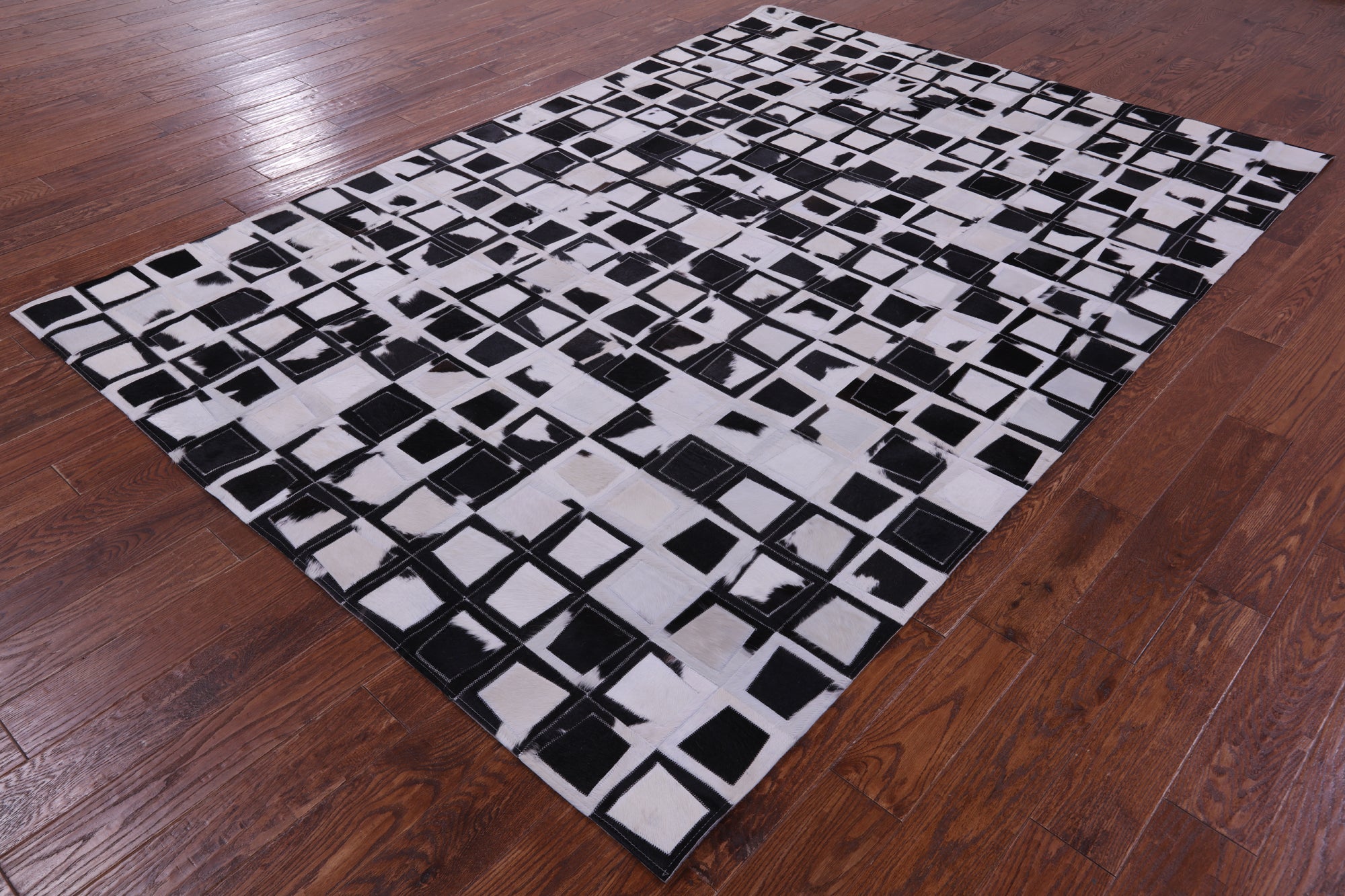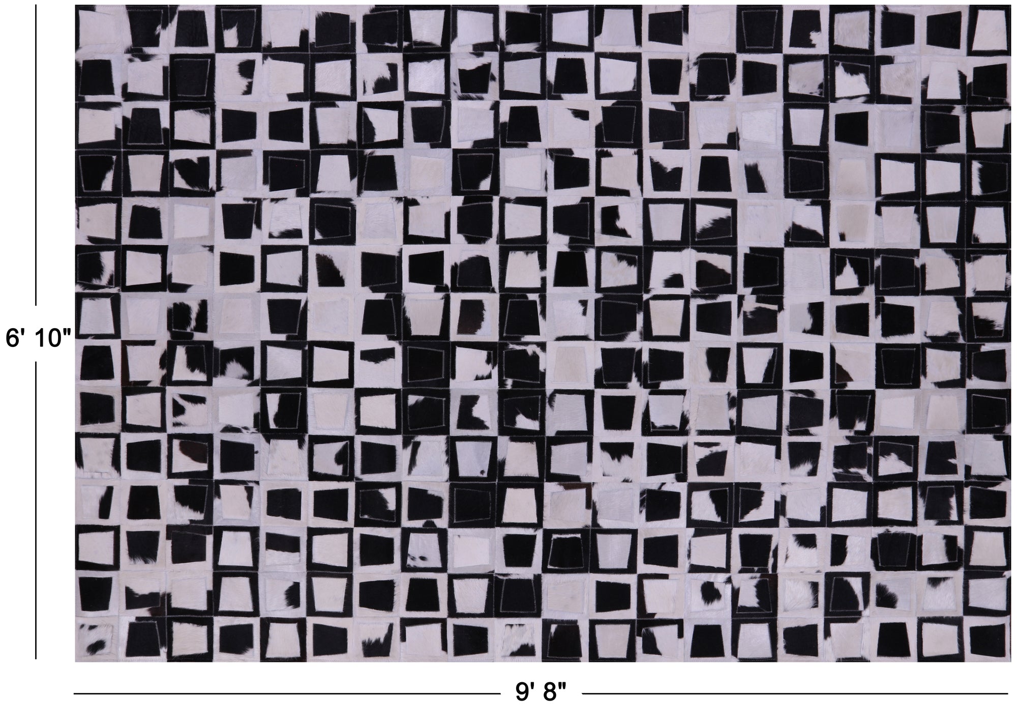 6' 10" X 9' 8" Wabi-Sabi Black & White Natural Cowhide Hand Stitched Rug - C3337