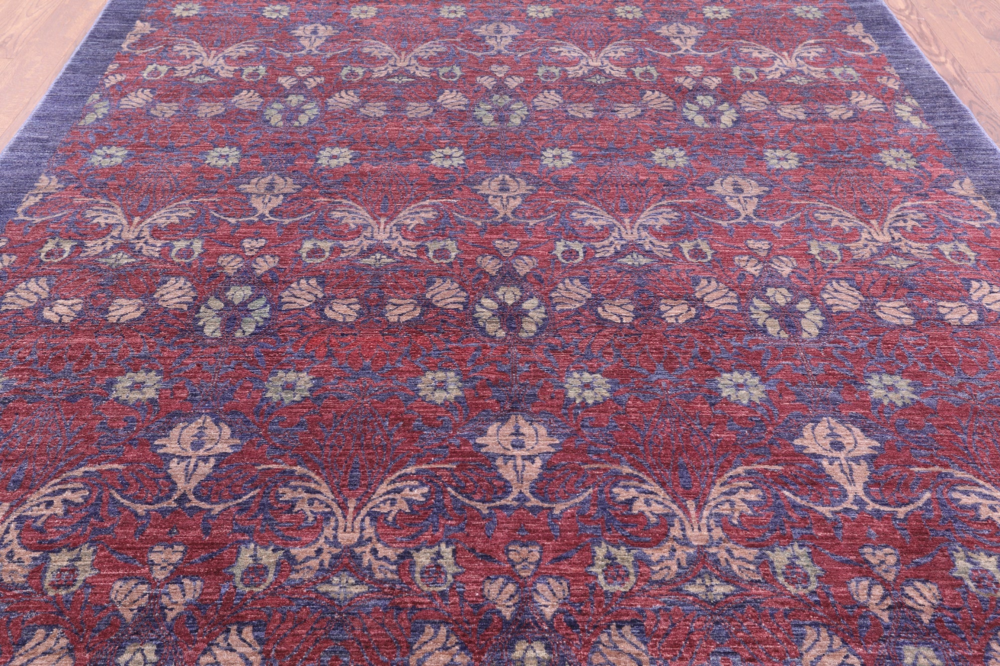 William Morris design are part of arts and crafts movement often including natural forms. These 19th and early 20th century designs are distinctive for their stylized natural forms, their symmetry and their vibrant colors. William Morris patterns are based on nature such thistles, ginkgo leaves, willow trees and flowers. These modern hand knotted rugs are woven with high quality wool, silk or both.