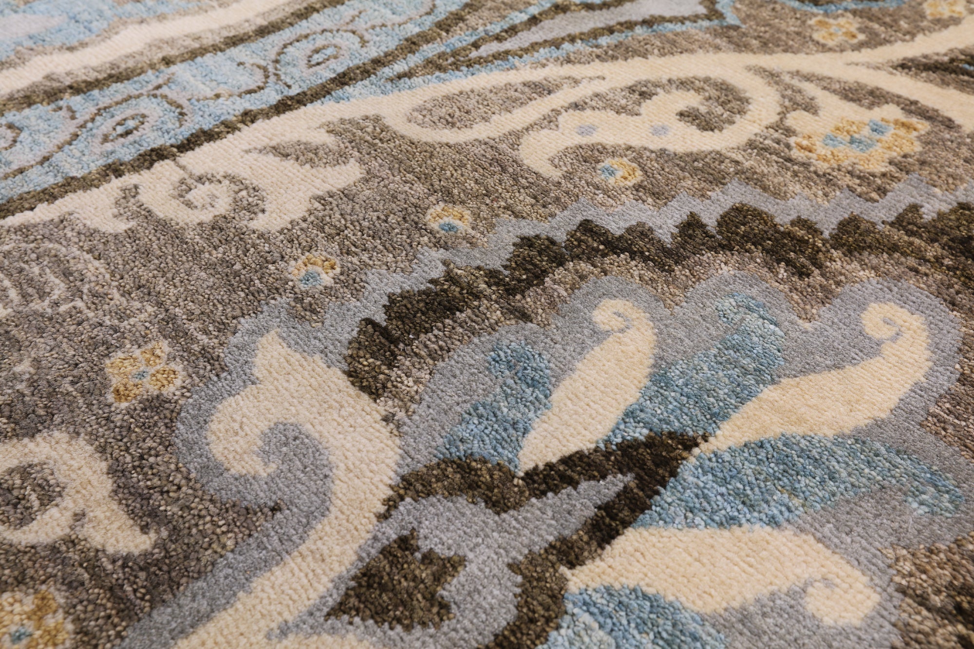 William Morris design are part of arts and crafts movement often including natural forms. These 19th and early 20th century designs are distinctive for their stylized natural forms, their symmetry and their vibrant colors. William Morris patterns are based on nature such thistles, ginkgo leaves, willow trees and flowers. These modern hand knotted rugs are woven with high quality wool, silk or both.