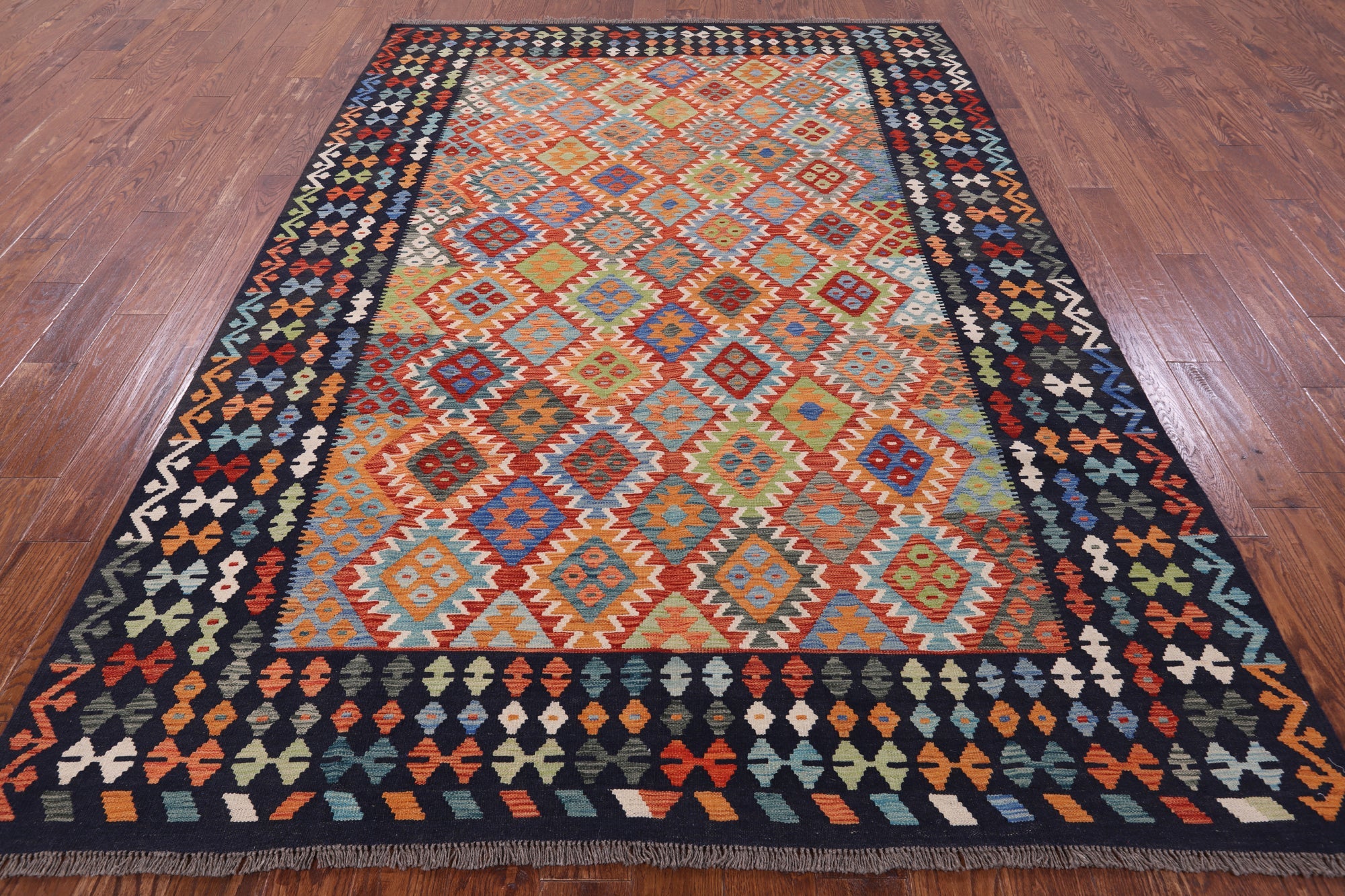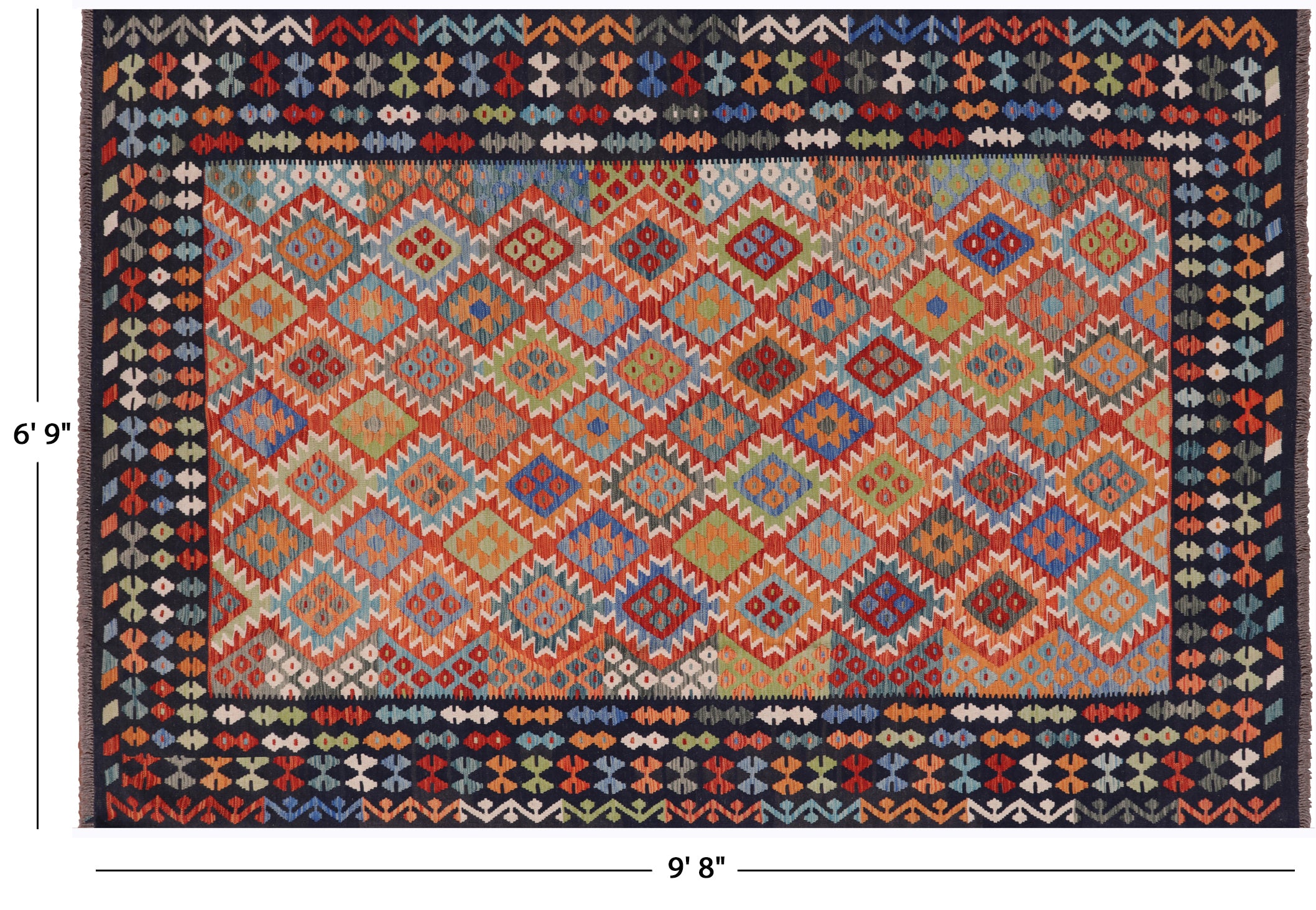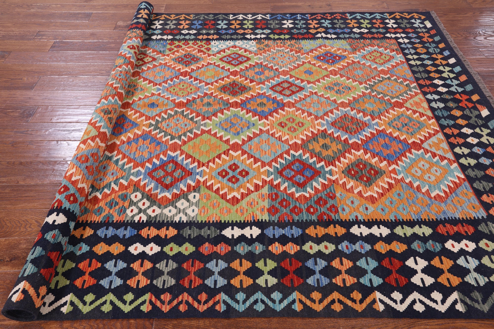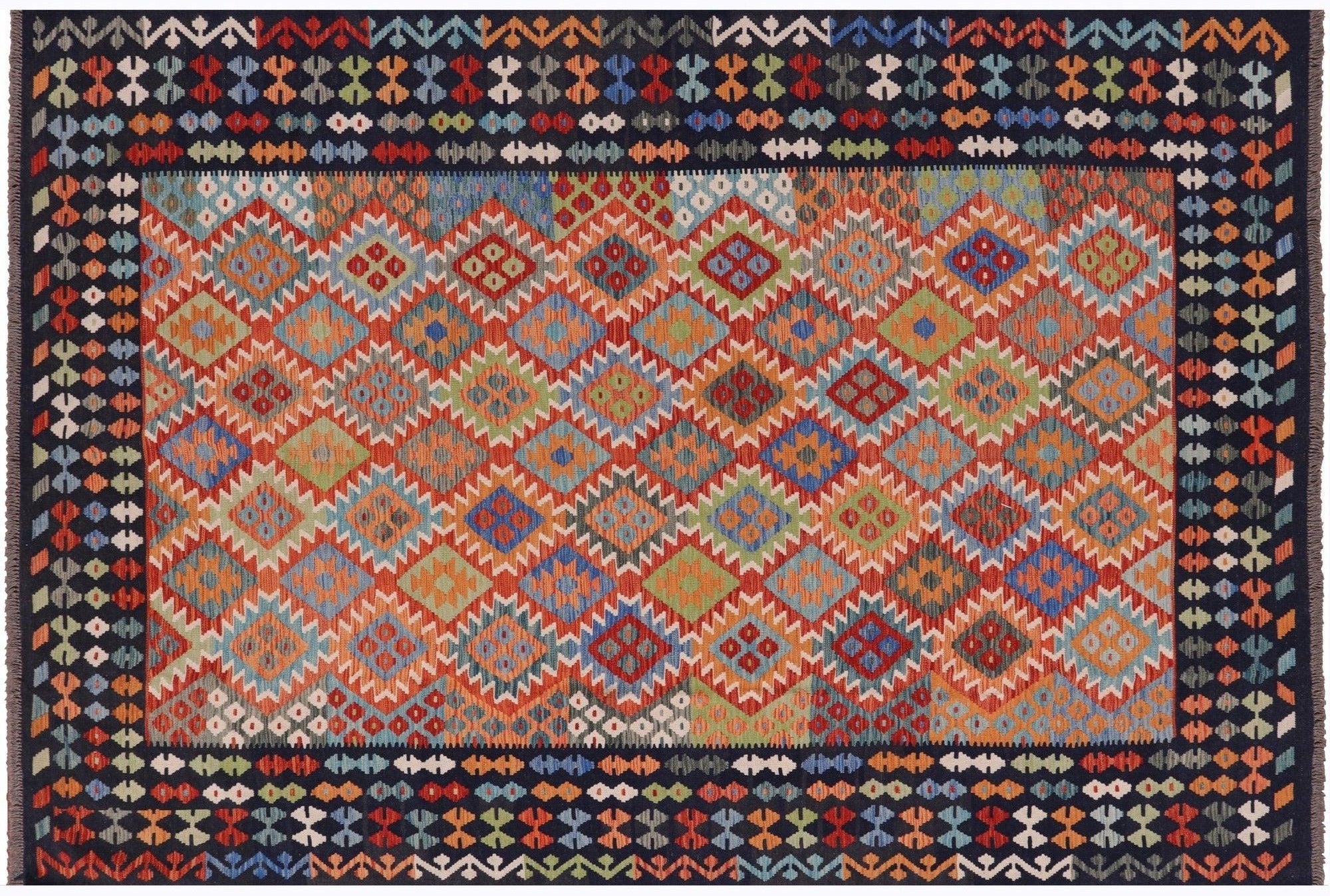 6' 9" X 9' 8" Wool On Wool Flat Weave Kilim Reversible Rug - Q9473 is backordered and will ship as soon as it is back in stock.