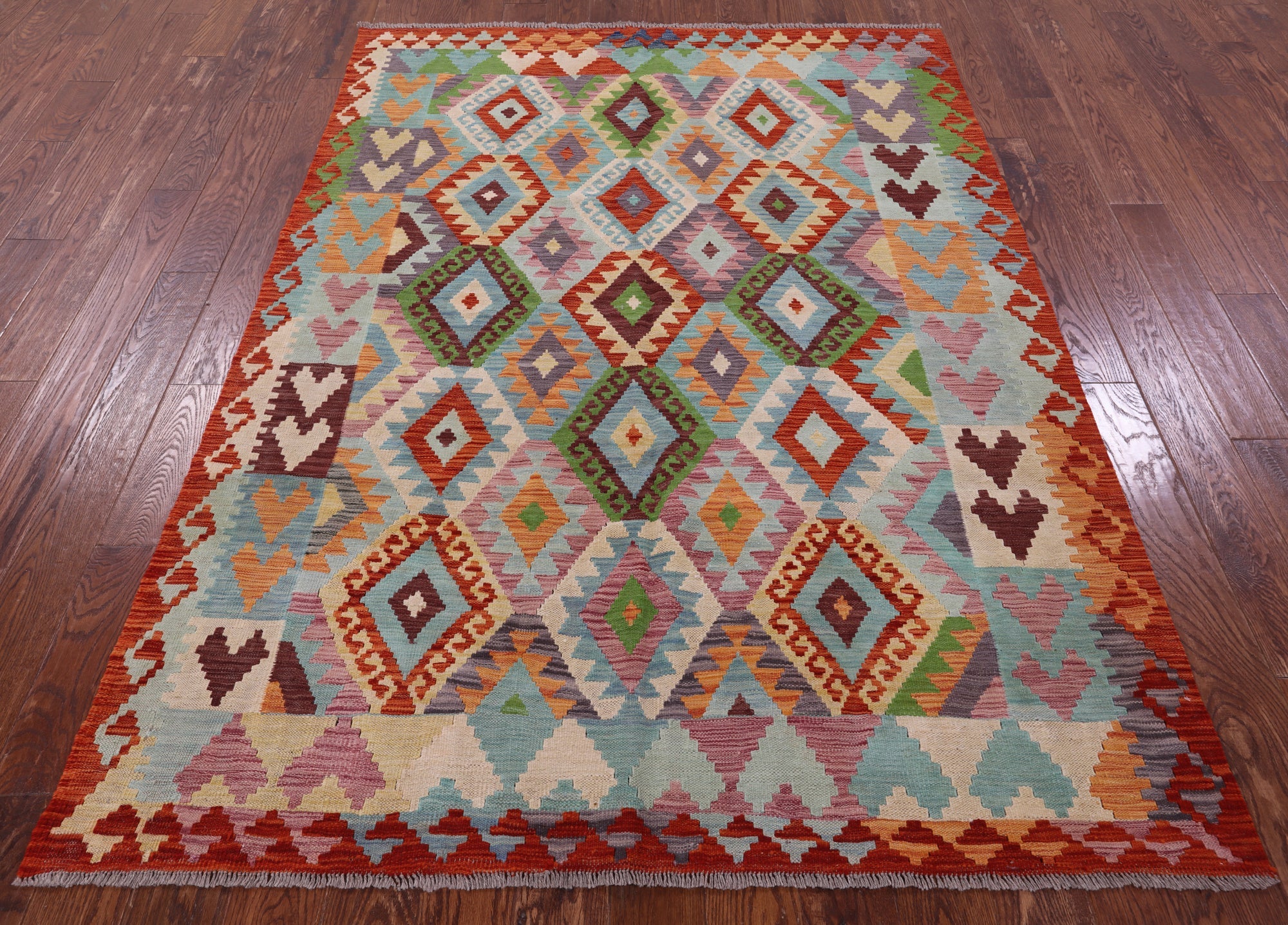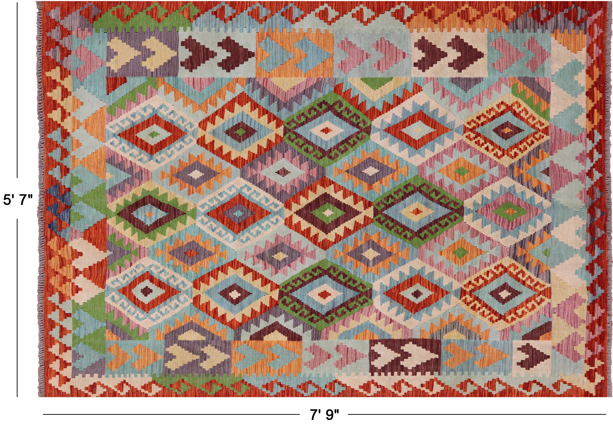 5' 7" X 7' 9" Wool On Wool Kilim Flat Weave Reversible Rug - Q17468 is backordered and will ship as soon as it is back in stock.