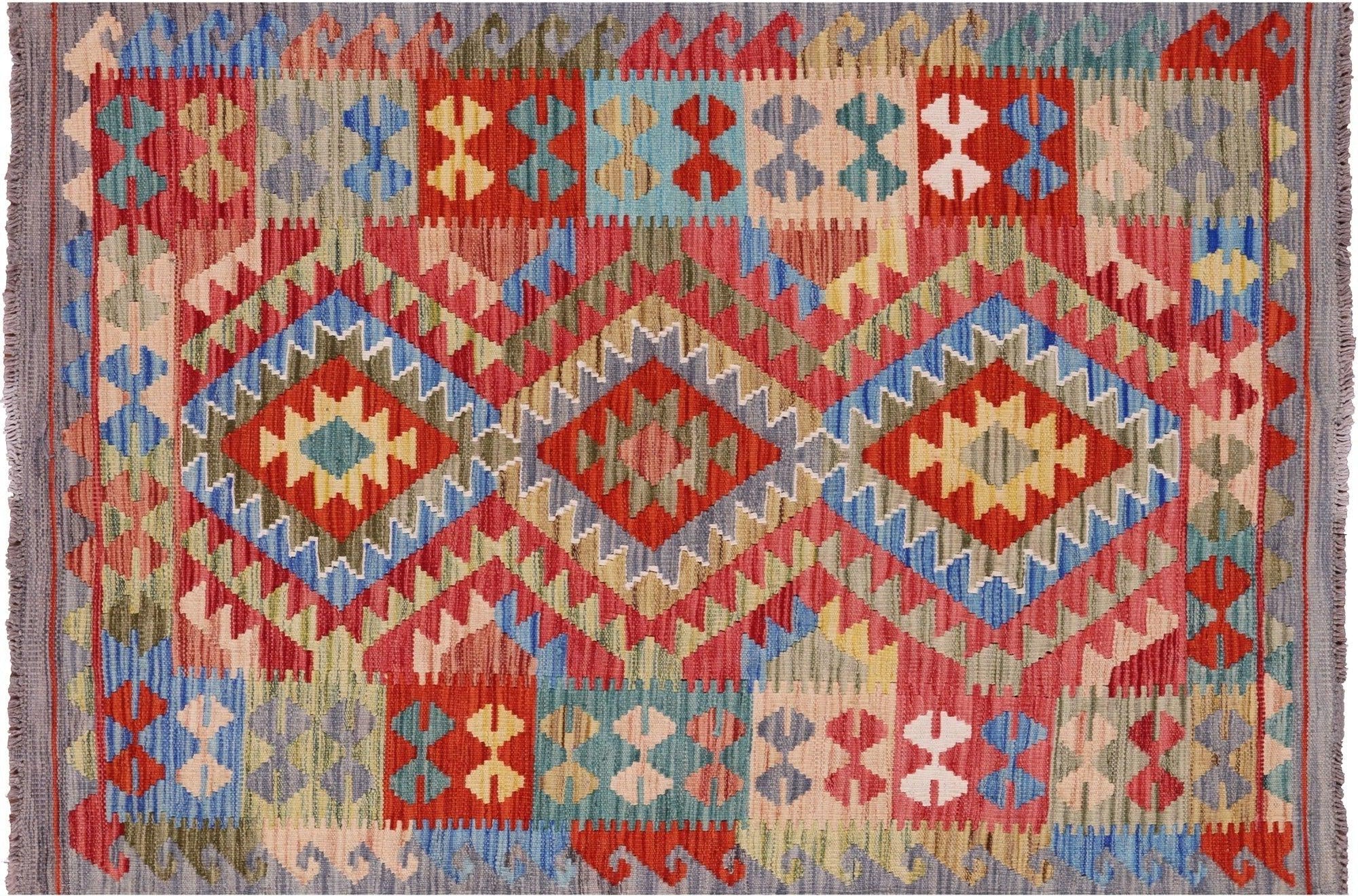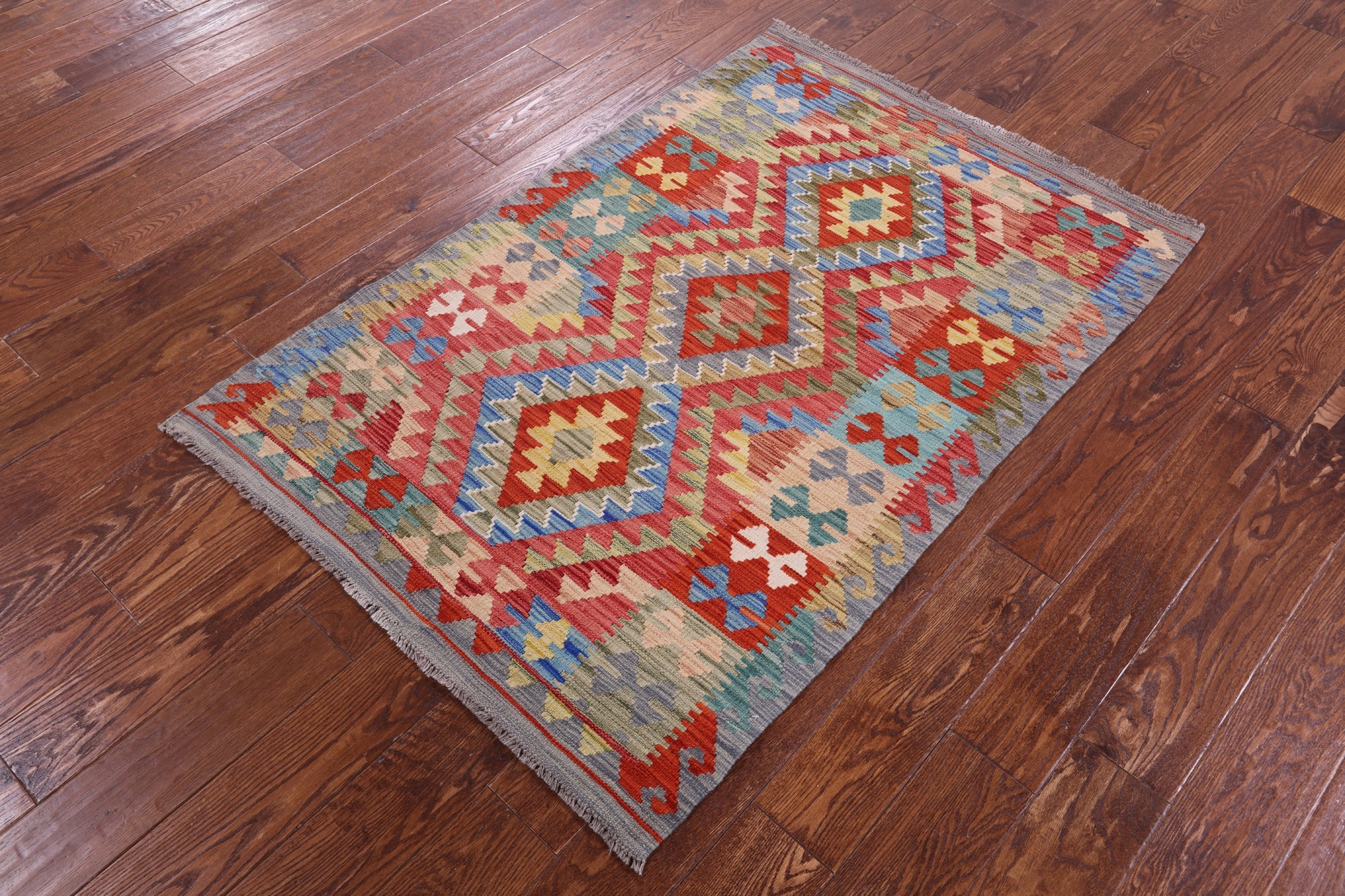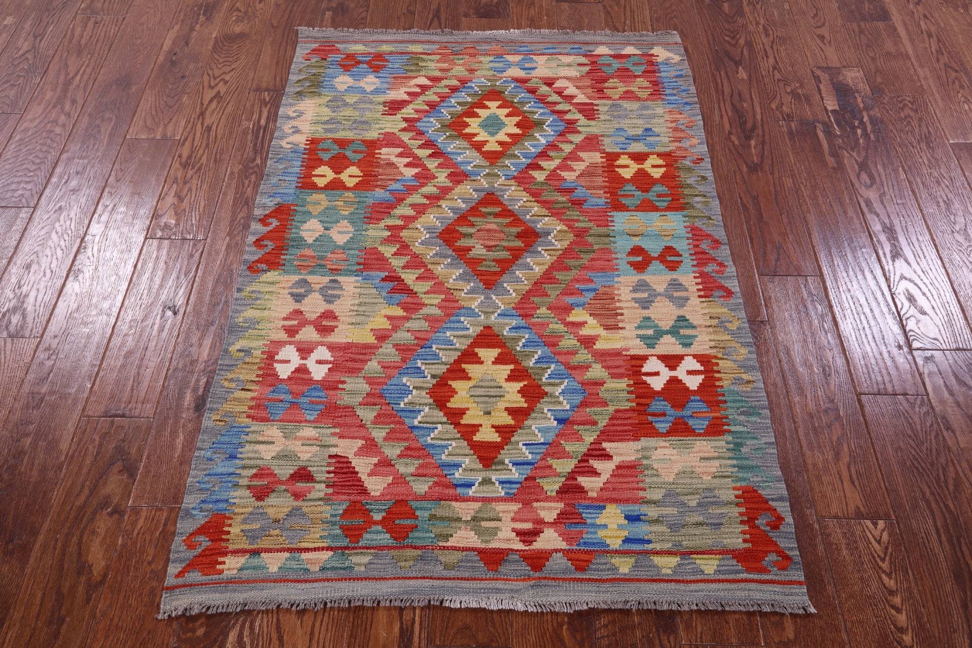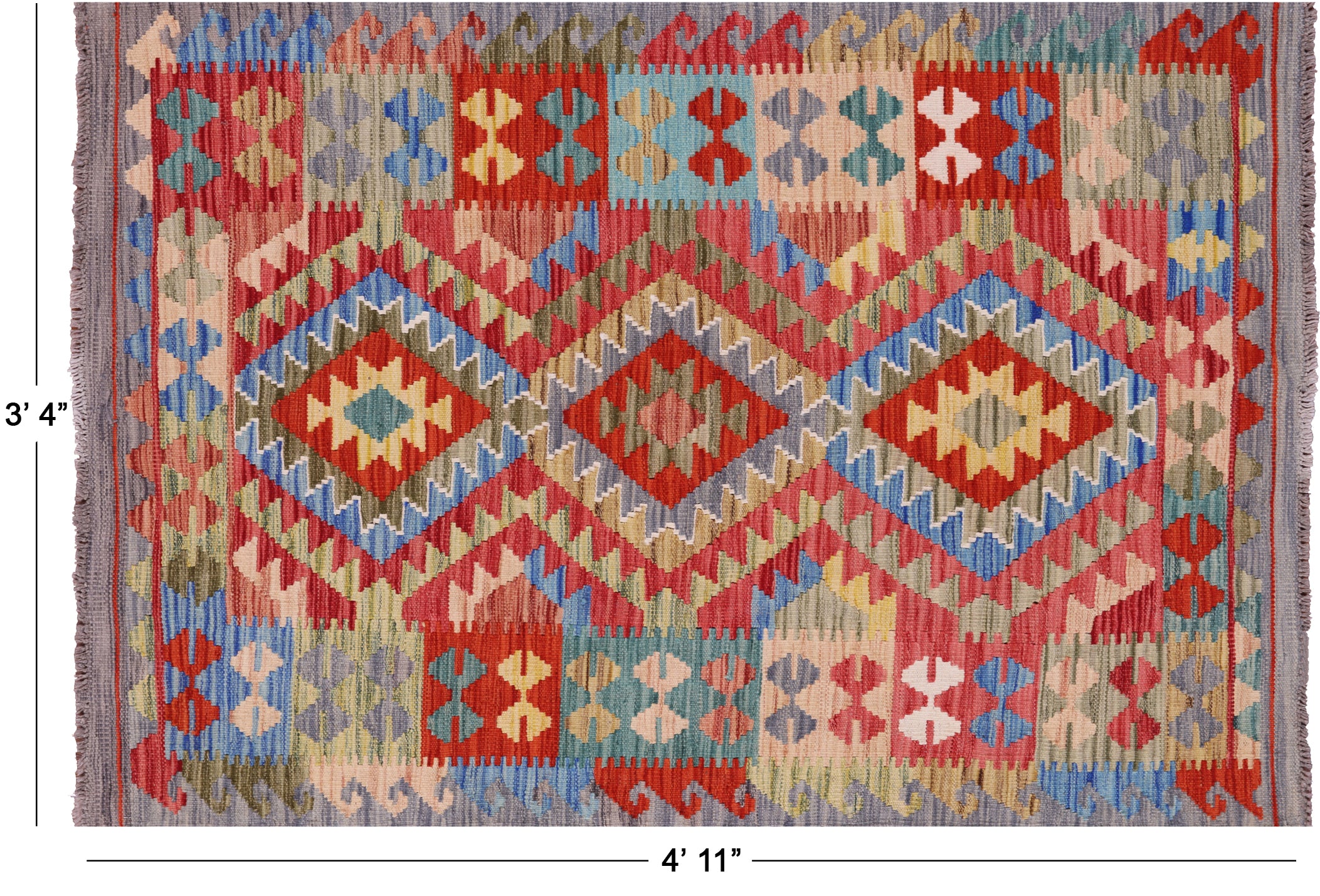 3' 4" X 4' 11" Wool On Wool Kilim Flat Weave Reversible Rug - Q17908