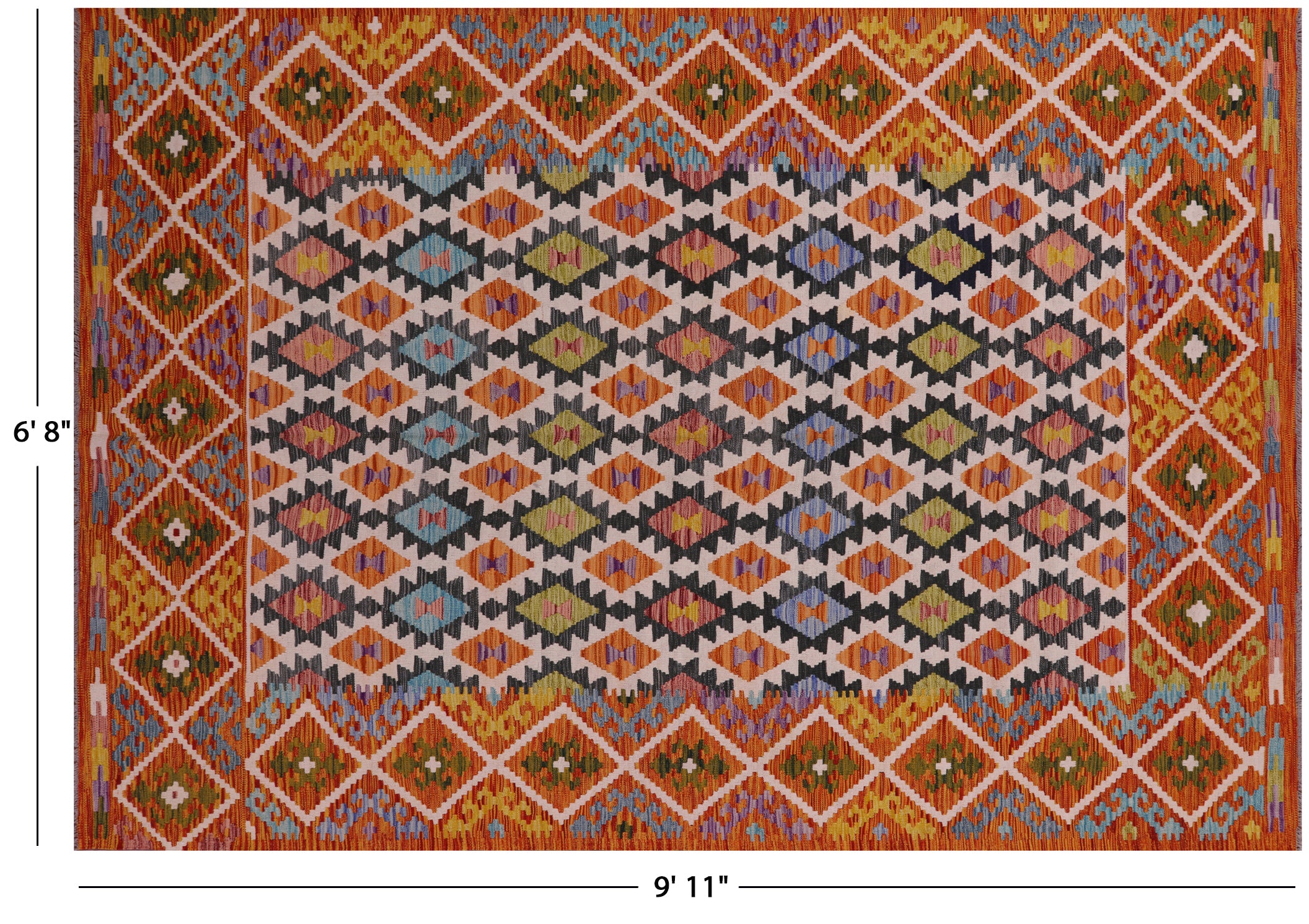 6' 8" X 9' 11" Wool On Wool Reversible Flat Weave Kilim Rug - Q17843