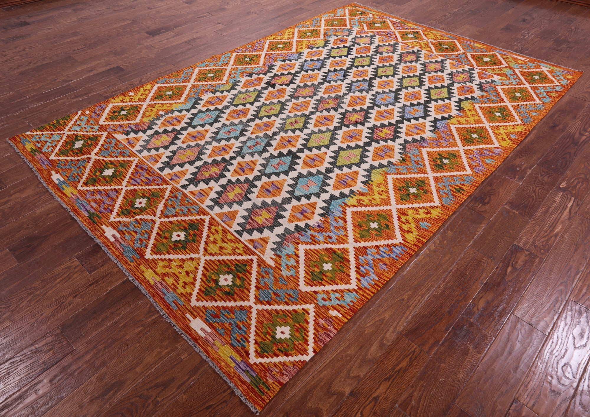 6' 8" X 9' 11" Wool On Wool Reversible Flat Weave Kilim Rug - Q17843 is backordered and will ship as soon as it is back in stock.
