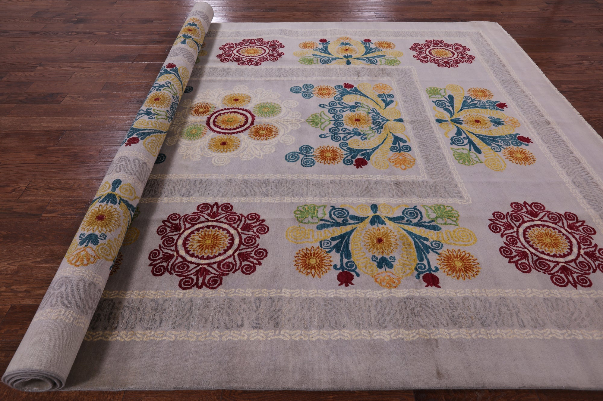 9' 1" X 12' 4" Wool & Silk Hand Knotted William Morris Rug - Q4759